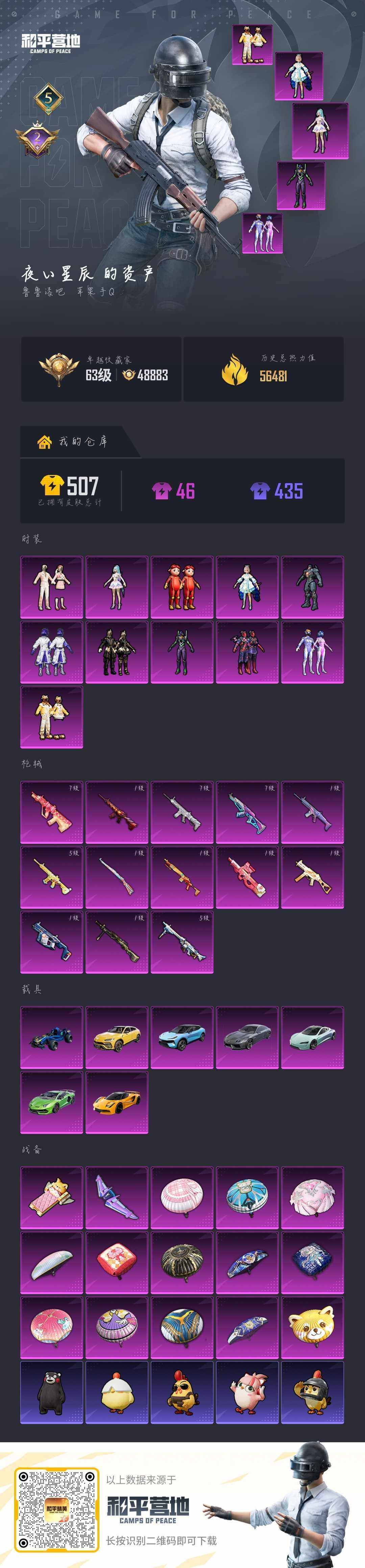 [17163259]苹果 手Q-11粉装-13特效枪-7载具-2粉色飞行器-56481热力值-5王牌印记-93套装-147枪皮