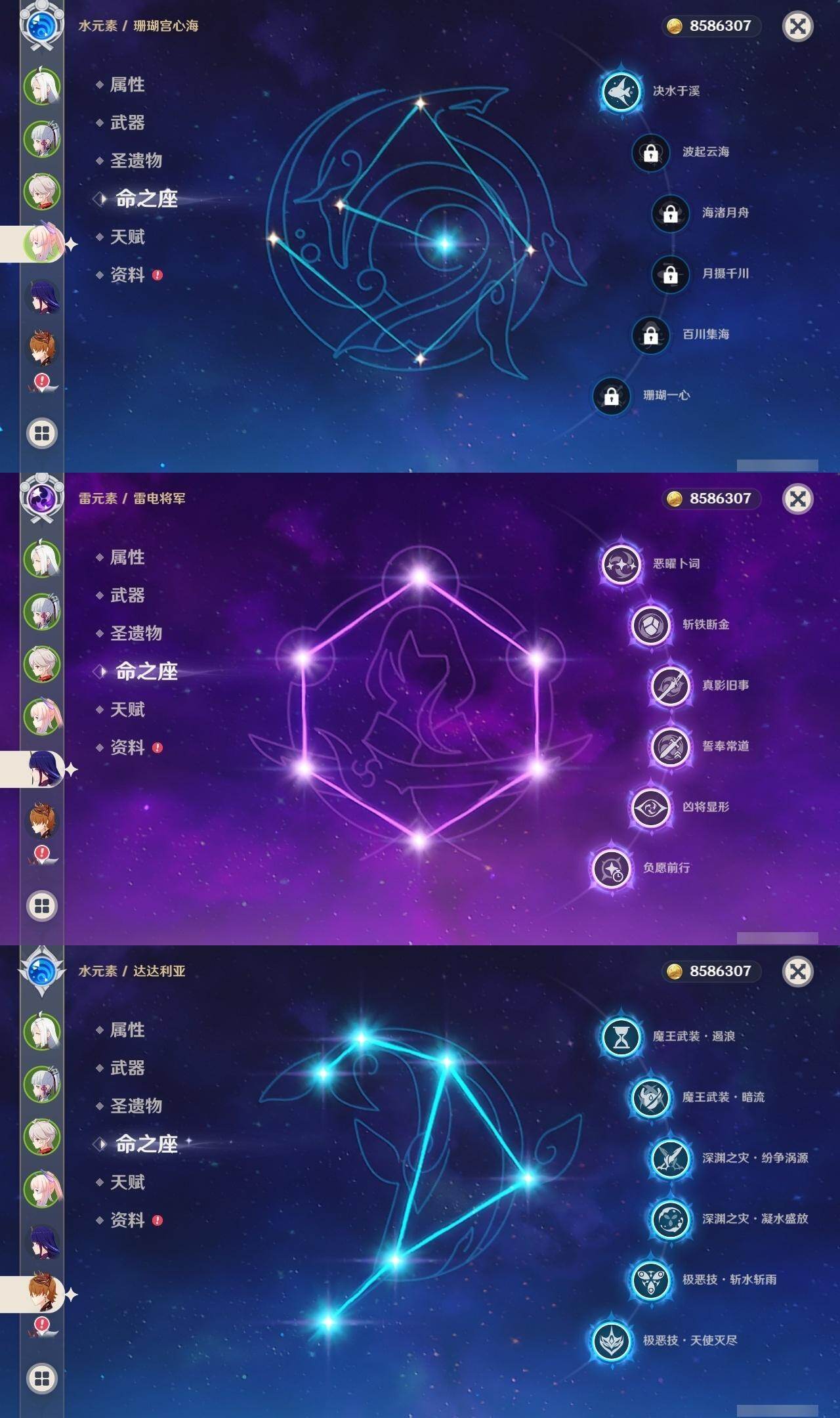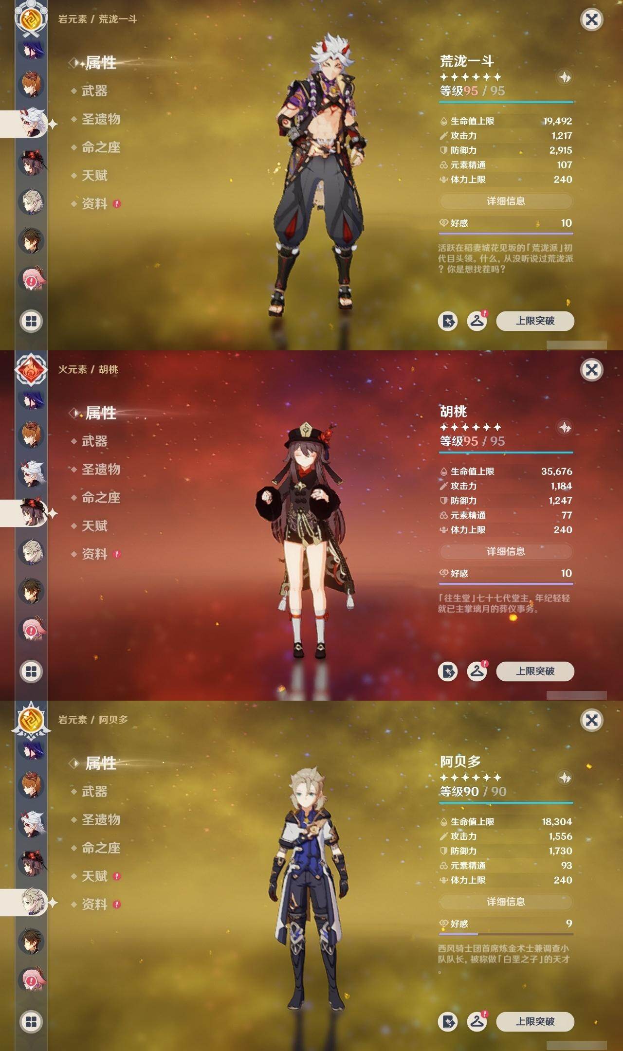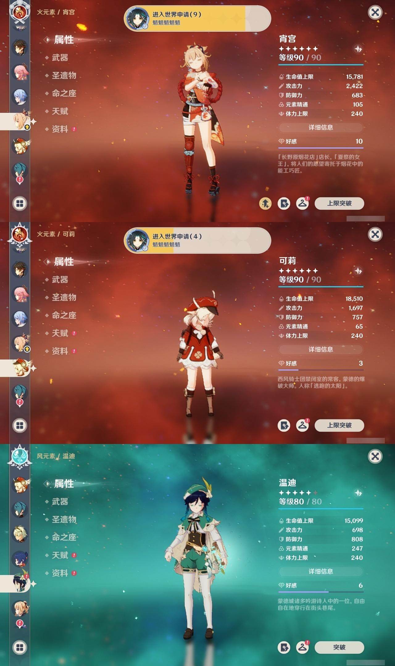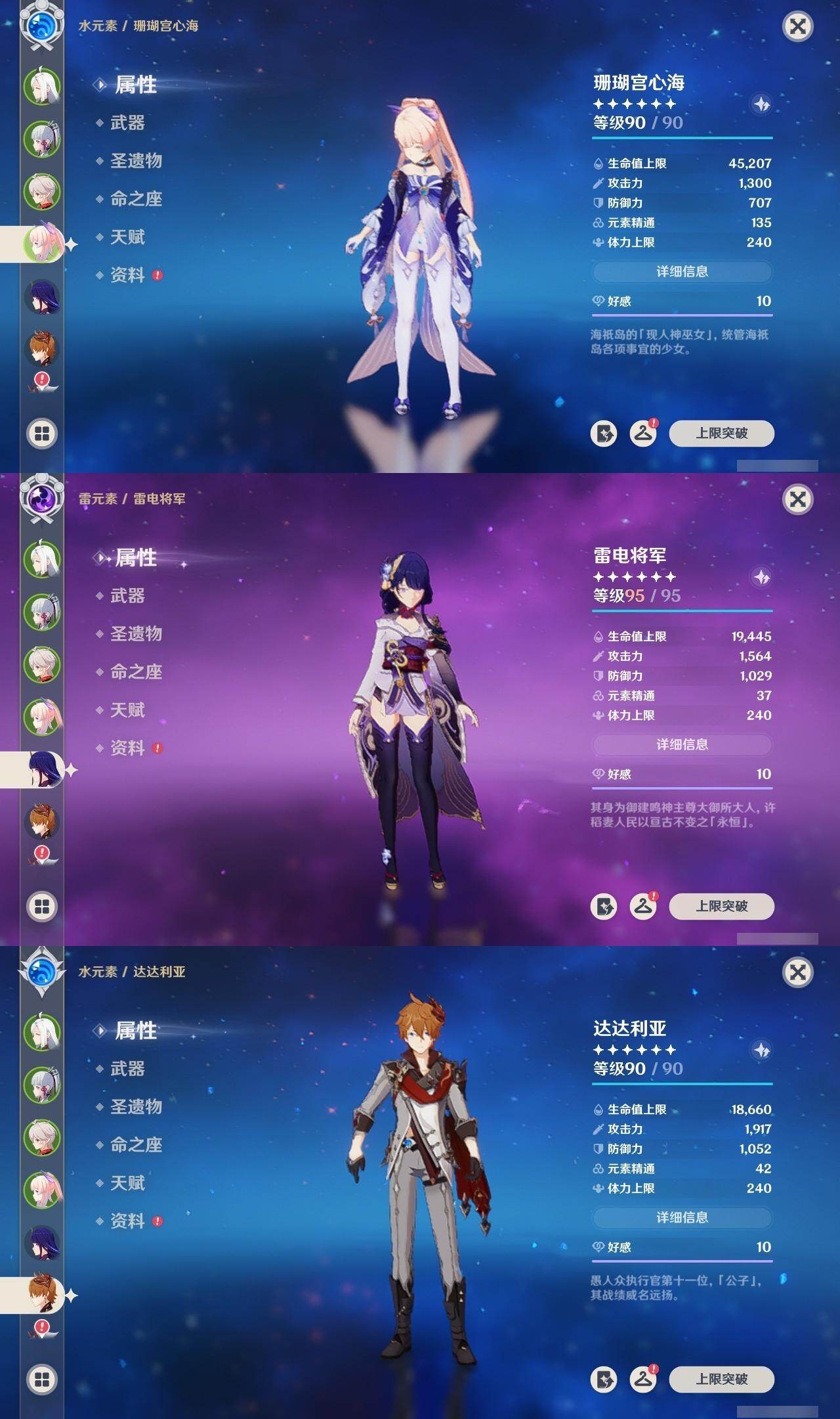 雷电将军,达达利亚,荒泷一斗,胡桃,宵宫,琴,七七,迪卢克