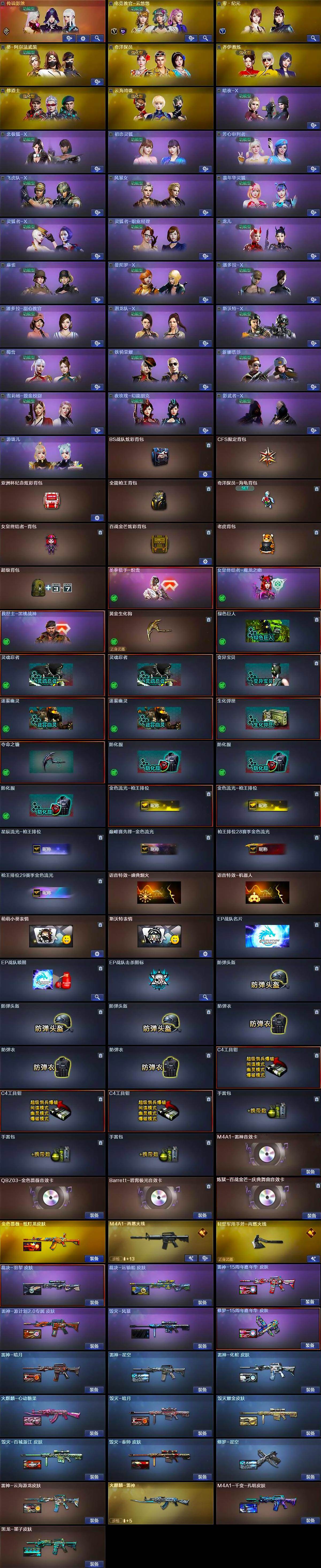 【道具】:BS战队炫彩背包,CFS限定背包,亚洲杯纪念炫彩背包,全能枪王背包,奇洋探员-海龟背包,女皇终结者-背包,百战金芒炫彩背包,老虎背