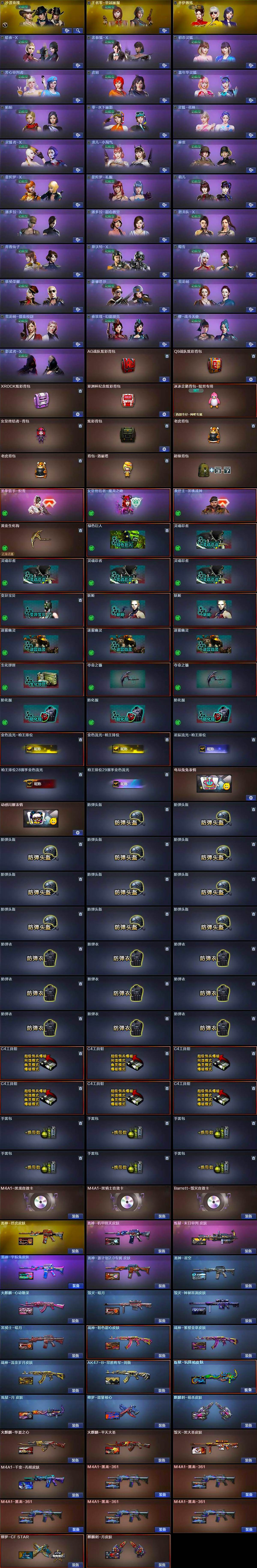 【皮肤】:雷神-星空,雷神-烈虎皮肤,雷神-机甲刑天皮肤,雷神-宇航兔皮肤,雷神-源计划2.0专属 皮肤,火麒麟-华夏之心,火麒麟-平天大圣,火麒麟-心动糖果,毁灭-暗月,毁灭-黑大圣皮肤,毁灭-神秘黑洞皮肤,M4A1-千变-孔明皮肤,M4A1-黑龙-361*5,黑骑士-暗月,战神-粉色甜心皮肤,战神-紫绶金章皮肤,战神-流金岁月皮肤,AK47-B-常胜将军-刘备,炼狱-玩具枪皮肤,炼狱-月 皮肤,炼狱-末日审判 皮肤,修罗-CF STAR,修罗-能量核心,麒麟刺-萌杀皮肤,麒麟刺-月皮肤