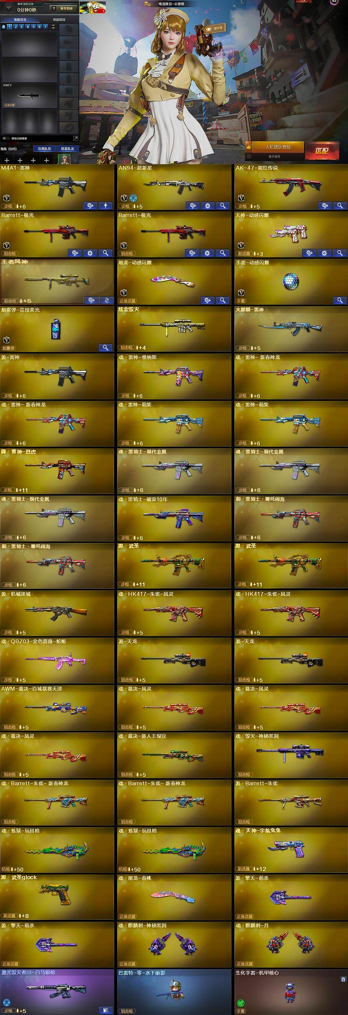 - [16331793]4m总资产-2436k哈伏币-53烽火等级-铂金-1战场等级-无军衔 【干员外观】:骇爪-水墨云图 【近战皮肤】:近战-黑鹰 【传说外观】:SCAR-H战斗步枪-水墨云图,G3战斗步枪-流光铂影,SMG-45冲锋枪-骑士 【史诗外观】:AKM突击步枪-林中猎手,AUG突击步枪-蝮蛇,G3战斗步枪-战场英杰,MP5冲锋枪-深海恐惧,勇士冲锋枪-深海恐惧,M1014霰弹枪-林中猎手,S12K霰弹枪-曙光,SVD狙击步枪-阿萨拉工艺,SVD狙击步枪-暗夜猎手,M700狙击步枪-蝮蛇 【稀有外观】:M4A1突击步枪-刚枪之王,ASh-12战斗步枪-星链科技,ASh-12战斗步枪-哈夫克航天,K416突击步枪-街头涂鸦,MP5冲锋枪-弄臣,P90冲锋枪-浅鲨小队,P90冲锋枪-新生,Vector冲锋枪-先锋,Vector冲锋枪-街头涂鸦,SMG-45-行动开启,SMG-45冲锋枪-幻影结构,MP7冲锋枪-幻影结构,M1014霰弹枪-幻影结构,M1014霰弹枪-童趣,PKM通用机枪-英雄,VSS射手步枪-童趣,SKS射手步枪-弄臣,SR-25射手步枪-开拓,SR-25射手步枪-蜂窝科技,SV-98狙击步枪-星链科技,SV-98狙击步枪-哈夫克航天,SV-98狙击步枪-精英联盟,G18-星链科技,G18-哈夫克航天 【普通外观】:Mini-14射手步枪-黄铜,M4A1突击步枪-粉色涂装,M4A1突击步枪-高雅黑,M4A1突击步枪-海色,QBZ95-1突击步枪-高雅黑,QBZ95-1突击步枪-海浪,QBZ95-1突击步枪-海色,QBZ191突击步枪-三角洲力量,K416突击步枪-几何迷彩,K416突击步枪-高雅黑,AUG突击步枪-浅蓝涂装,M7战斗步枪-红色涂装,SG552突击步枪-浅蓝涂装,SG552突击步枪-海浪,AK-12突击步枪-冰川,AK-12突击步枪-落花,SCAR-H战斗步枪-数码迷彩,G3战斗步枪-高雅黑,MP5冲锋枪-安全工作,MP5冲锋枪-海色,P90冲锋枪-安全工作,Vector冲锋枪-几何迷彩,UZI冲锋枪-海色,QCQ171冲锋枪-三角洲力量,M1014霰弹枪-高雅黑,M1014霰弹枪-海浪,SV-98狙击步枪-红色涂装,.357左轮-精钢,沙漠之鹰-海浪,M1911-坚固材料 【军牌】:军牌-装备修理,军牌-夜间撤离,军牌-静谧时光,军牌-展示,军牌-