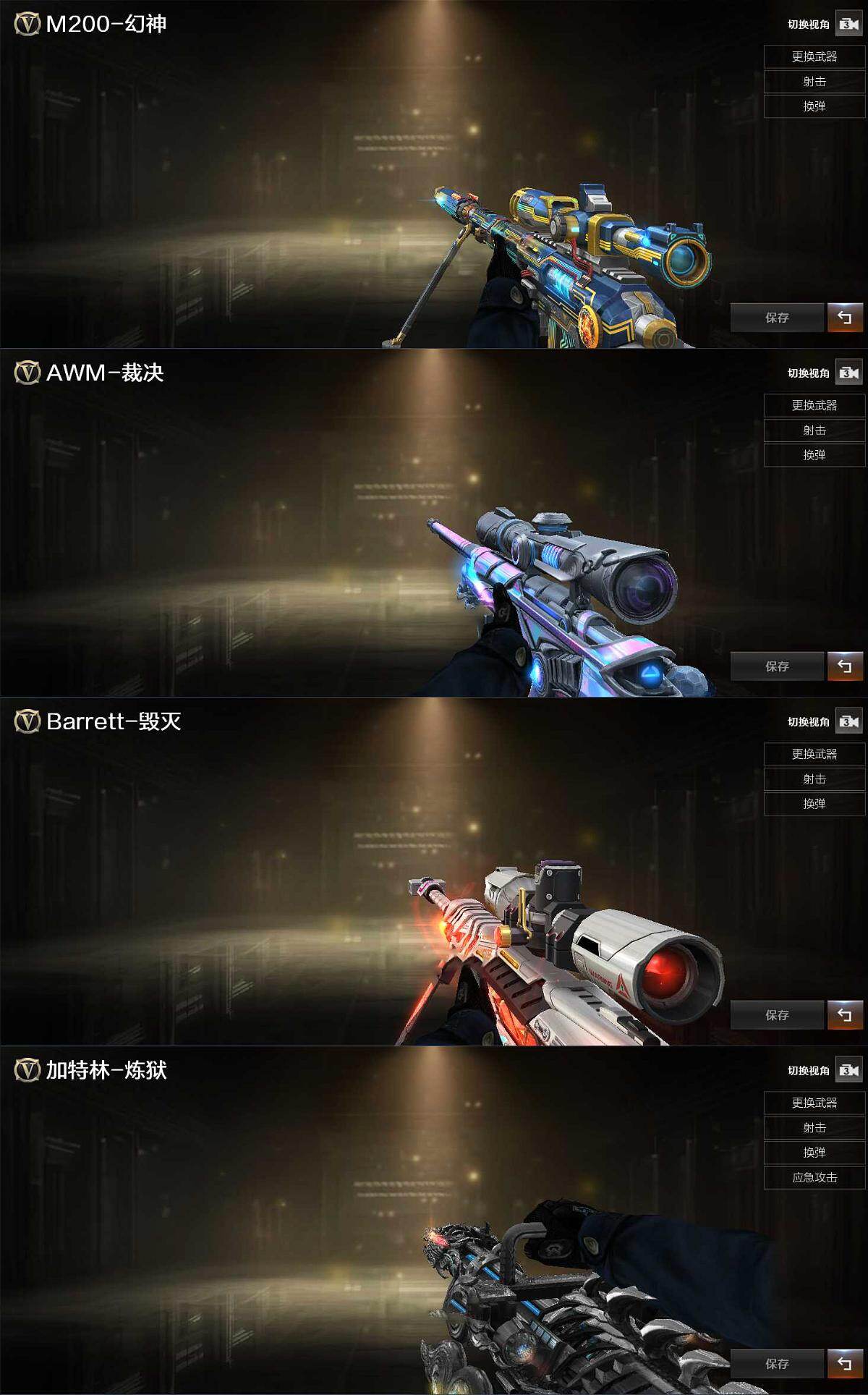 【人偶武器】:Scar Light-马枪,COP-旗袍,牛牛-AK47,巴雷特-赏金猎人,Barrett-夜玫瑰