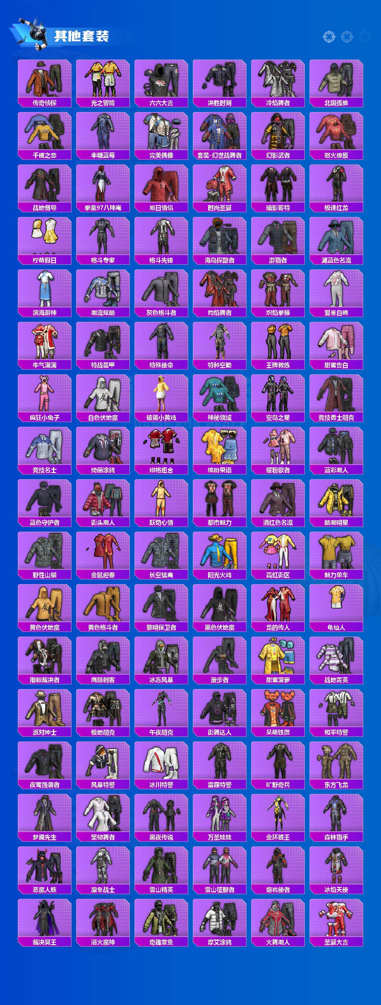 套装-都市猎人,套装-派对舞王,套装-潮萌小黄鸭,套装-宝贝奶油派,套装-天使彩虹糖,套装-蝶舞迷情,套装-星之彼岸,套装-葫芦兄弟,角色-幻影,角色-猩猩队长,玩偶服-猪猪侠,套装-雪月幻音,套装-爱崽白熊,套装-鹰眼刺客,套装-呆萌铁蟹,套装-东方飞龙,套装-梦魇先生,套装-万圣娃娃