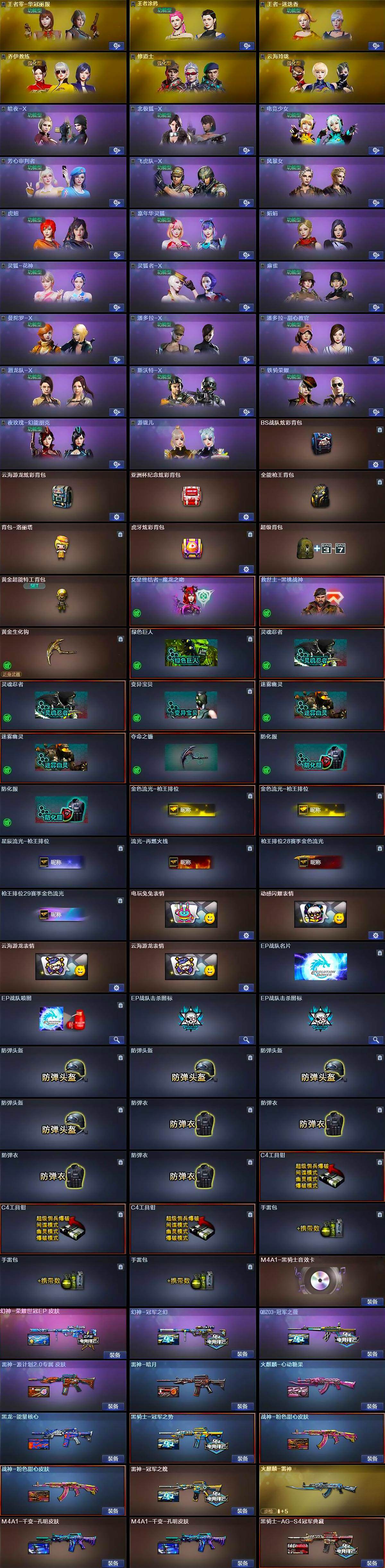 【英雄级武器】:AK47-火麒麟,M4A1-雷神,M4A1-黑骑士,无影-神兵利器,QBZ03-金色蔷薇,9A91-烈火,烈火-动感闪耀,AK-47-猩红传说*2,王者白虎-觉醒版,AWM-裁决,M200-幻神,烈龙-云海游龙,沙鹰-修罗*3,柯尔特-冠军之特,天神-动感闪耀,幻灵之锋,屠龙-动感闪耀,擎天-云海游龙,尼泊尔-电竞装甲,高爆手雷-幻灵,高爆手雷-神工天巧*2,手雷-动感闪耀,手雷-云海游龙,闪光弹-幻灵,闪光弹-神工天巧,烟雾弹-幻灵,烟雾弹-神工天巧,M4A1-赤狱骑士