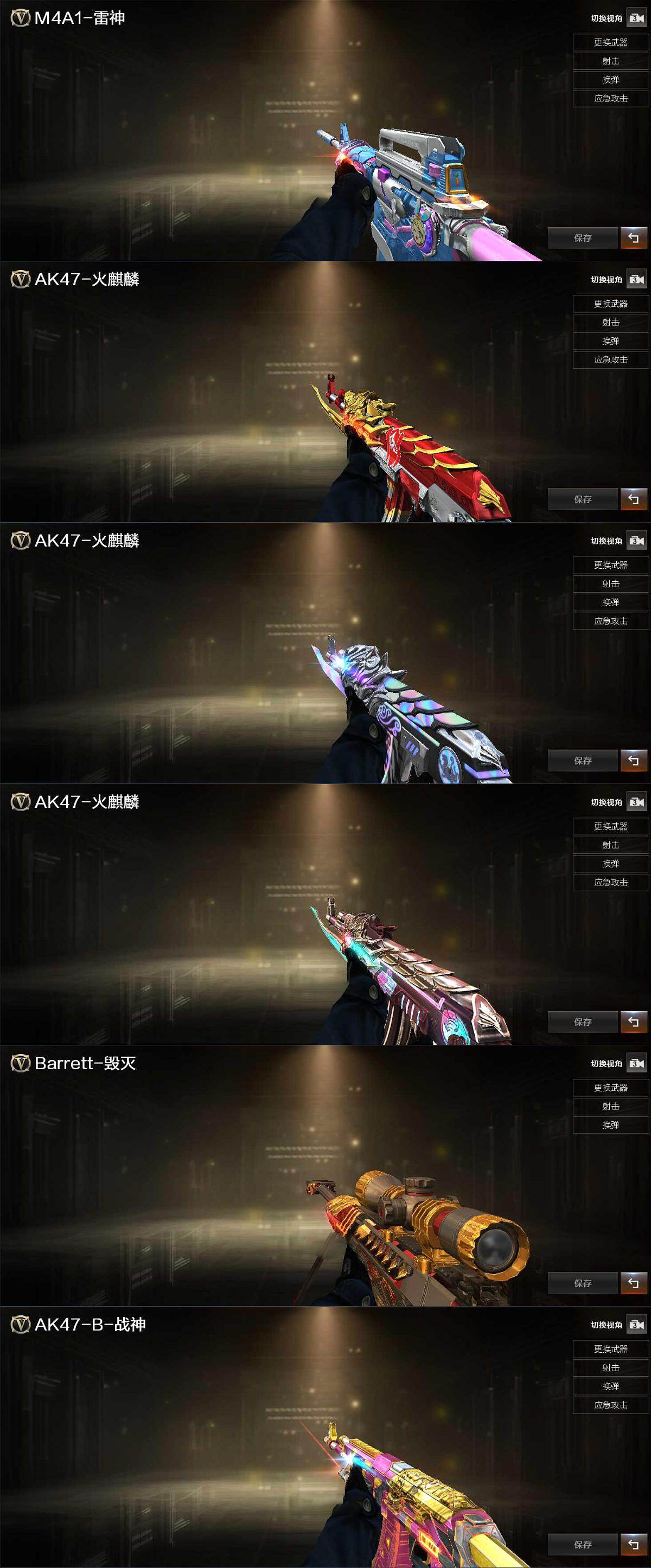 【热门武器】:传说暗裔,QBZ03-金色蔷薇,Scar Light-白虎,HK417-朱雀,M200-幻神,白虎-电玩蓝兔,汤姆逊-烈龙*6,斯泰尔-蝴蝶,COP 357-雷霆王者,沙鹰-修罗*4