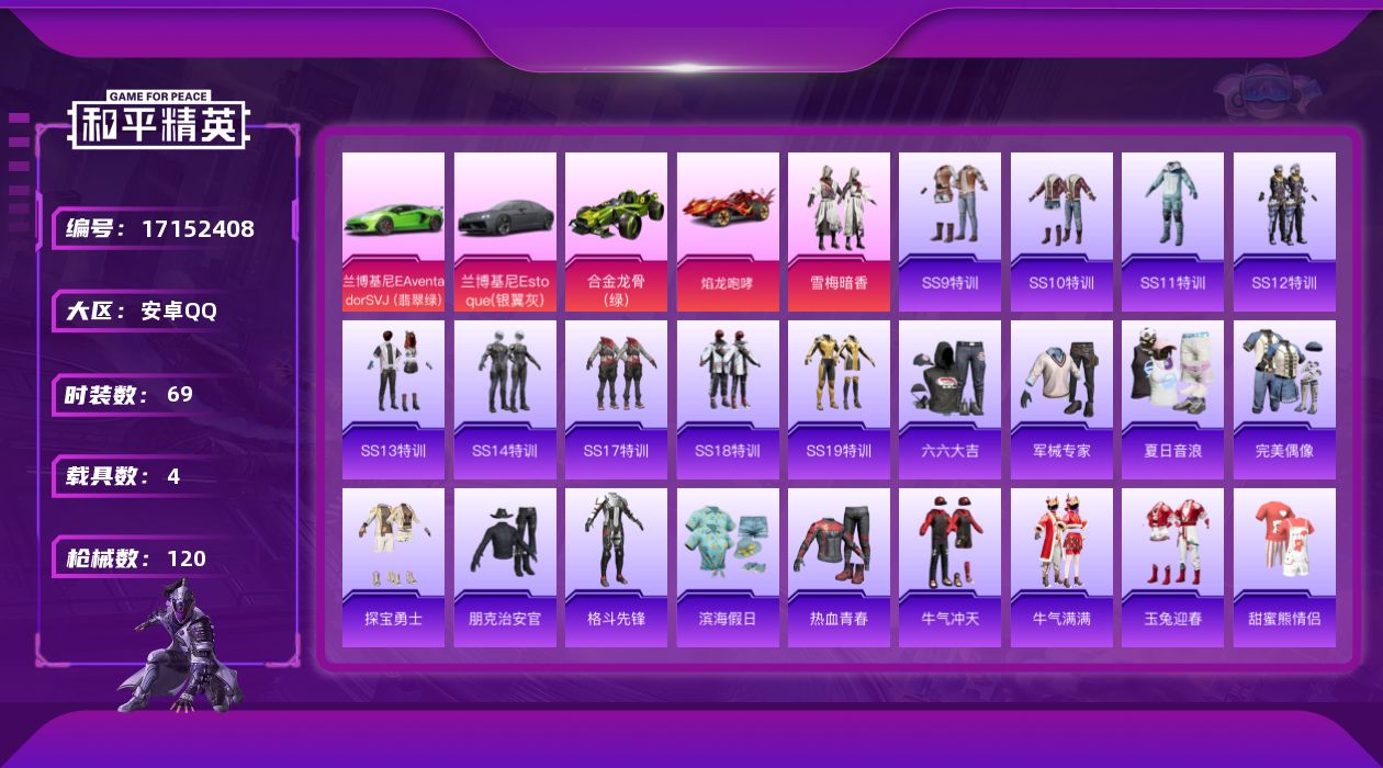 [17152408]【特价出售/店主推荐】安卓 手Q-1粉装-4载具-1粉色飞行器-3·4w热力值-1王牌印记-69套装-120枪皮