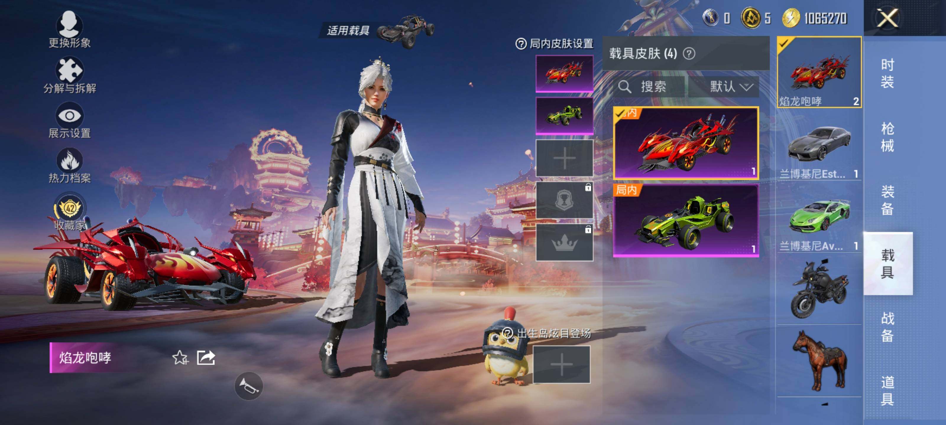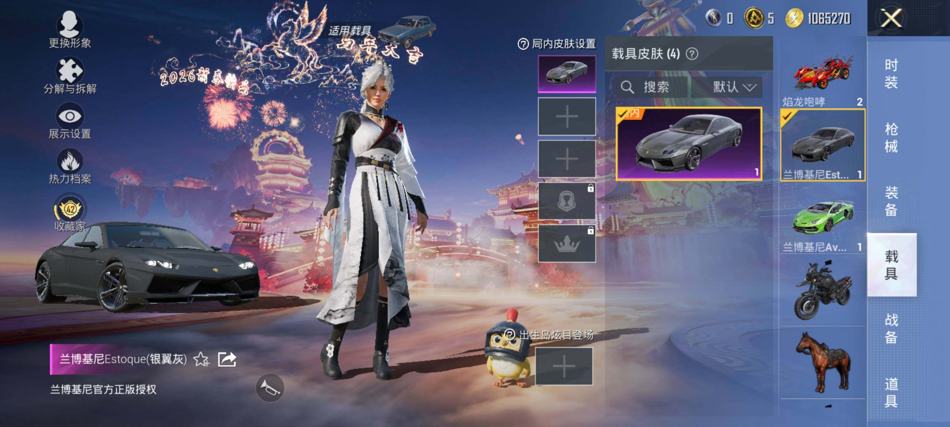 【粉色载具】:兰博基尼Aventador SVJ(翡翠绿),兰博基尼Estoque(银翼灰),合金龙骨(绿),焰龙咆哮