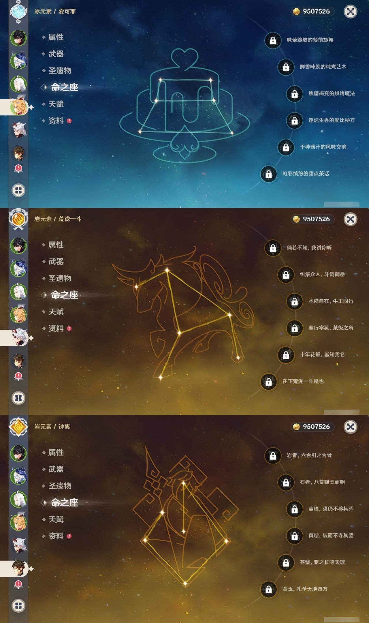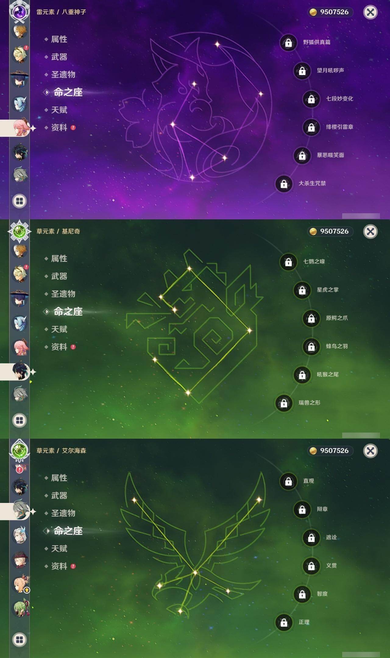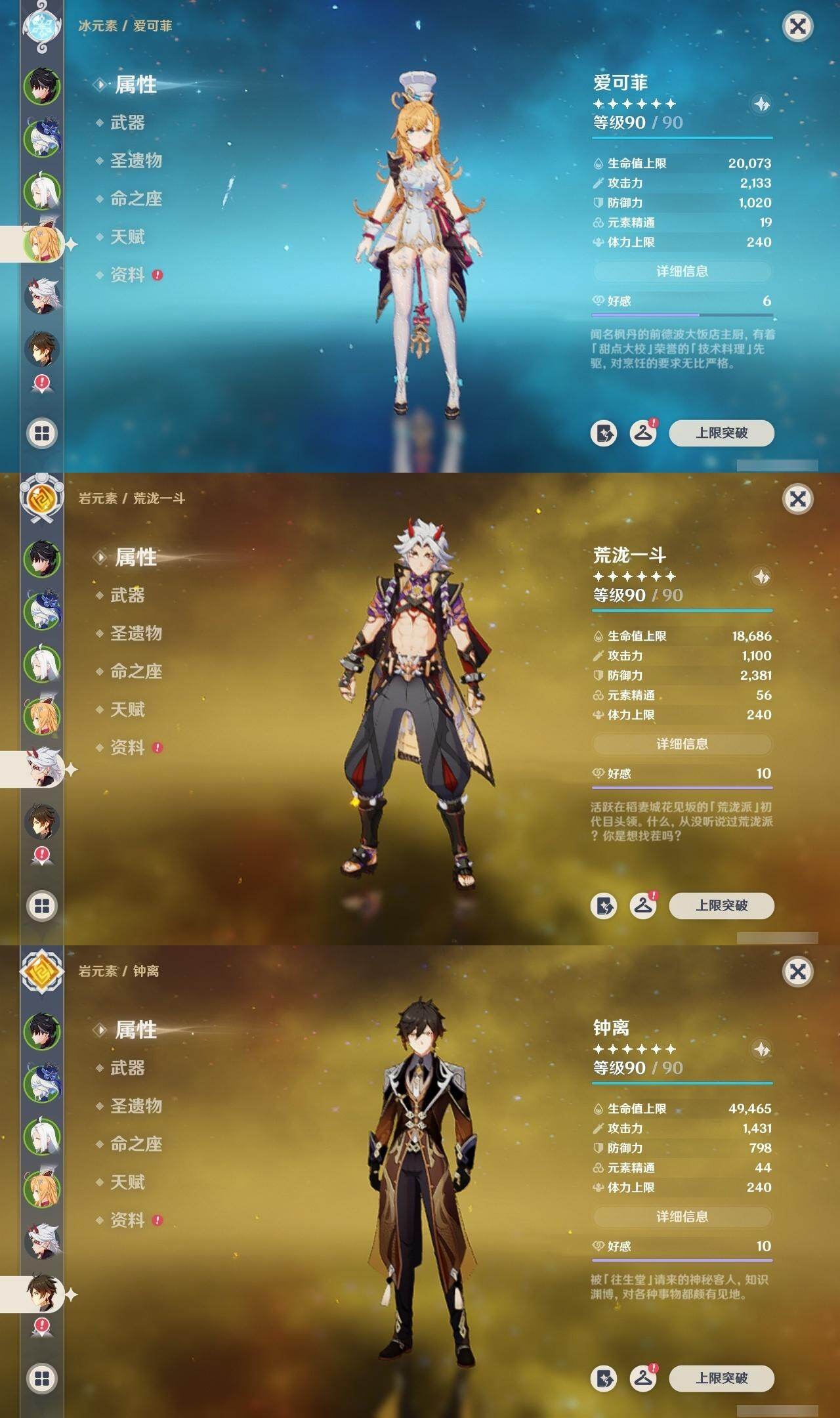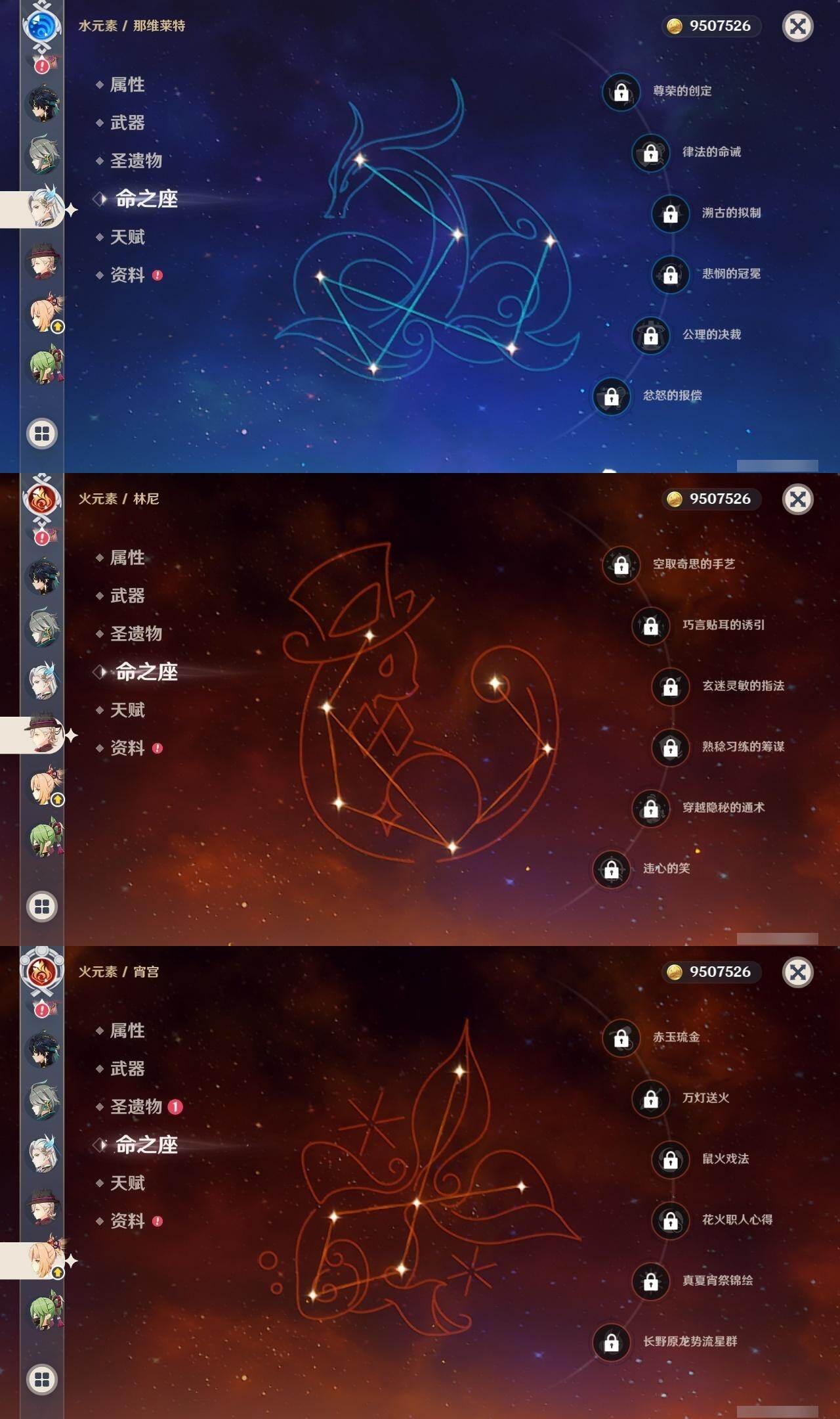 1命芙宁娜,1命莱欧斯利,0命那维莱特,0命林尼,0命艾尔海森,0命流浪者,0命纳西妲,0命赛诺,3命提纳里,0命八重神子,0命申鹤,0命荒泷一斗,0命优菈,0命雷电将军,1命枫原万叶,3命神里绫华,0命钟离,0命胡桃,0命宵宫,0命珊瑚宫心海,3命刻晴,3命七七,2命琴,满命莫娜,0命基尼奇,0命爱可菲,精1赦罪,精1有乐御簾切,精1静水流涌之辉,精1碧落之珑,精1苇海信标,精1赤沙之杖,精1若水,精1薙草之稻光,精1飞雷之弦振,精1雾切之回光,精1苍古自由之誓,精1护摩之杖,精1磐岩结绿,精2四风原典,精1天空之翼,精1阿莫斯之弓,精1风鹰剑,精1狼的末路