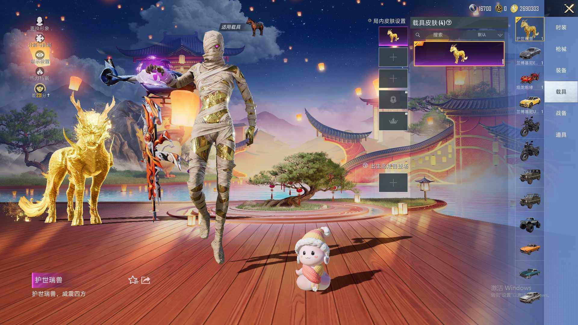【粉色载具】:兰博基尼Estoque(银翼灰),兰博基尼URUS(明艳黄),焰龙咆哮,空客H135-蔚蓝之翼,护世瑞兽