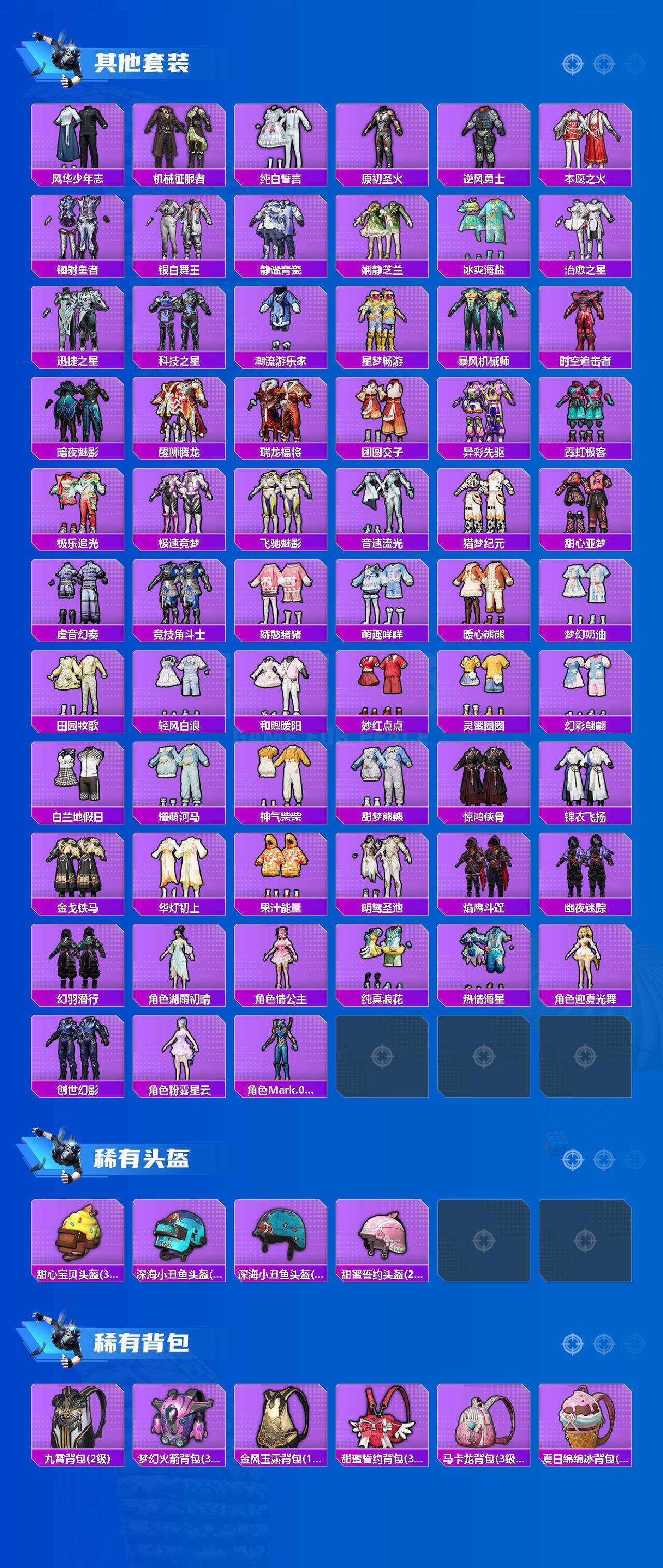 【热门品类】:套装-浪漫天命,套装-深海小丑鱼,套装-奇异狩猎者,套装-龟仙人,套装-暗影哥特,套装-粉红小猪,角色-Mark.06