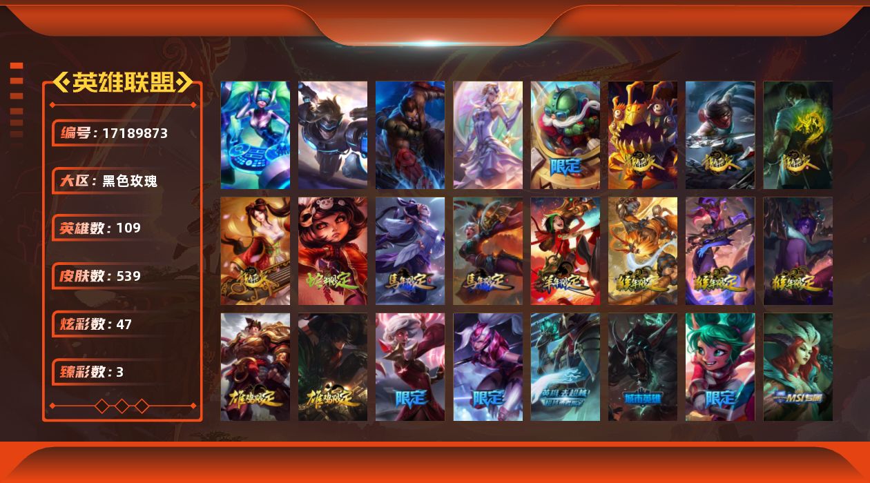 [17189873]可二次【特价出售/店主推荐】开三把游戏可以开排位未定级段位-109英雄-539皮肤-47炫彩-4终极-0神话-132限定-52传说-153史诗