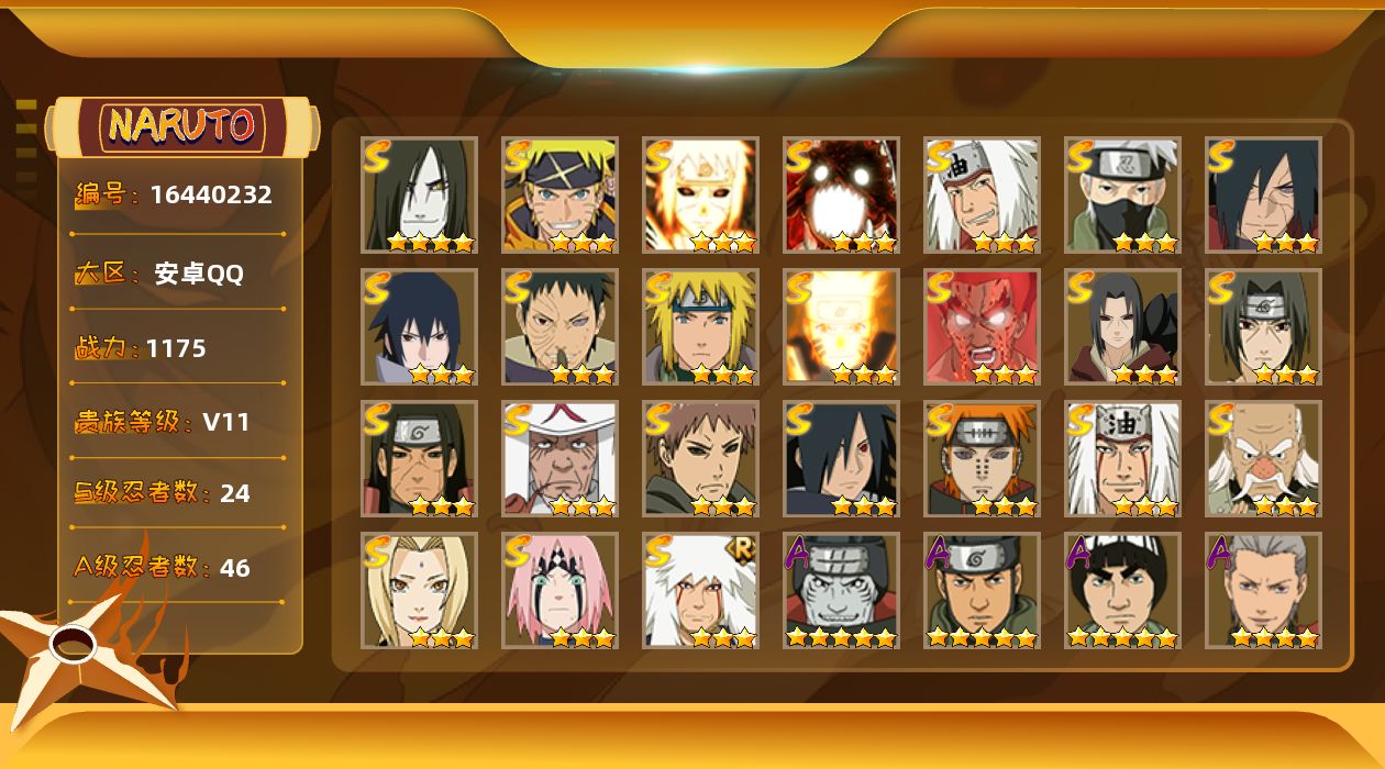 - [11445656]V4 6S忍 12A忍 13通灵 329.6W战力 可二次 可修改实名 优质装备:宇智波佐助「永恒万花筒」,旗木卡卡西「须佐能乎」 S级忍者:自来也 「舞之豪杰」,宇智波鼬 「须佐能乎」,佩恩「天道」,波风水门