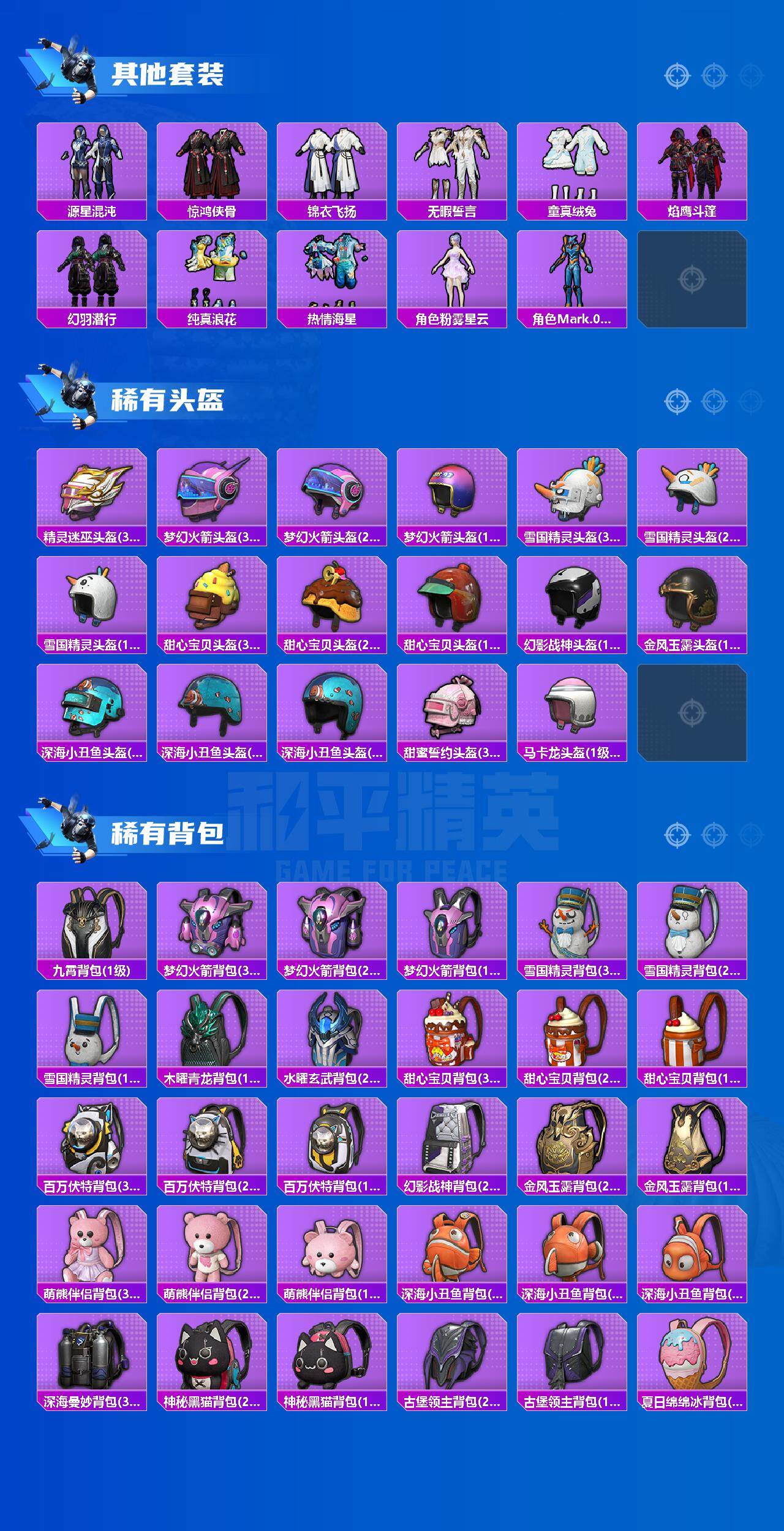 【热门品类】:粉装-雪国幻梦,粉装-梦幻火箭,粉装-缤纷油彩,套装-浪漫天命,套装-都市猎人,套装-派对舞王,套装-深海小丑鱼,套装-小丑鱼,套装-奇异狩猎者,套装-胖达团团,套装-SS1特训,套装-龟仙人,套装-暗影哥特,角色-Mark.06,熔岩游骑兵连帽夹克