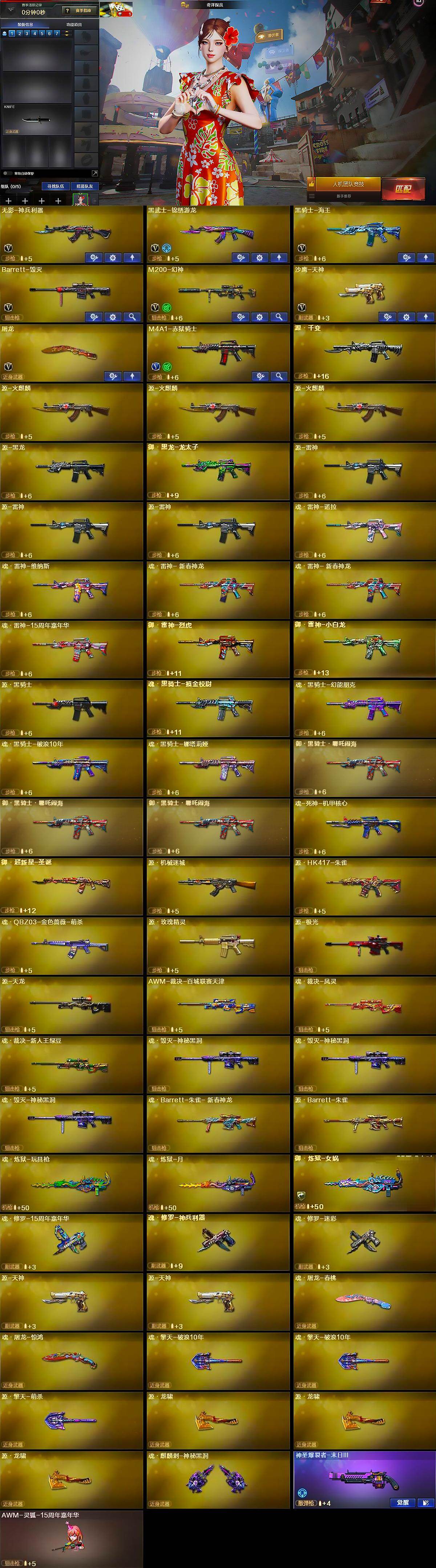 【英雄级武器】:无影-神兵利器,黑武士-锦绣游龙,黑骑士-海王,Barrett-毁灭,M200-幻神,沙鹰-天神,屠龙,M4A1-赤狱骑士