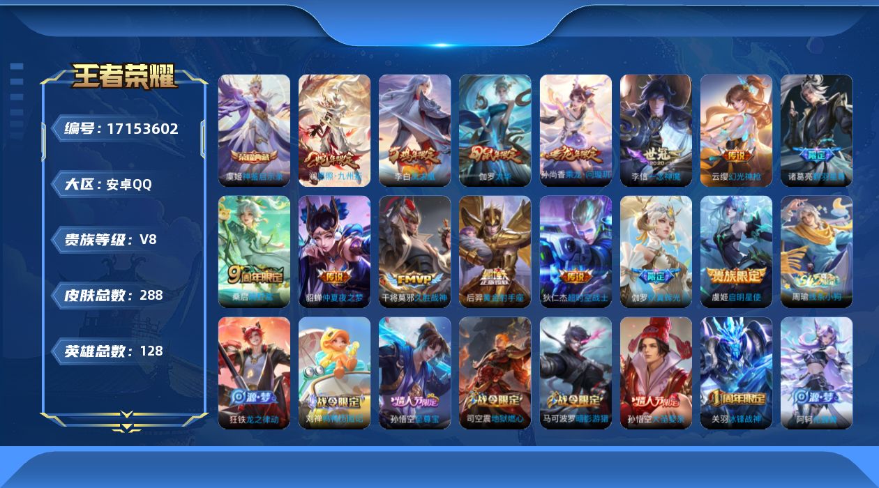 [17153602]安卓Q-V8-288皮肤-1典藏皮肤-14传说-85史诗