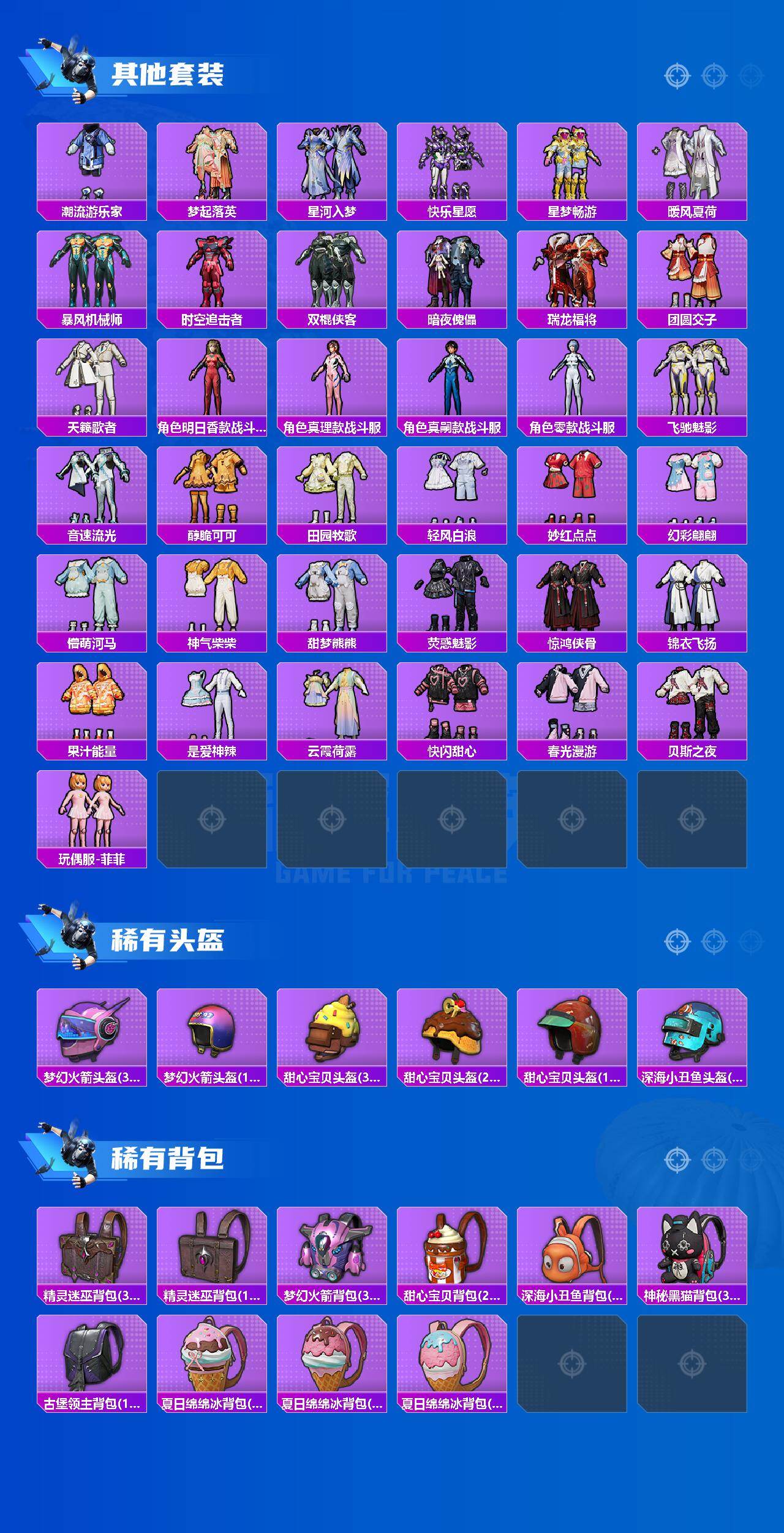 - PX_2077441- 安卓手Q-0王牌印记-0粉装-5特效枪-0载具-12114热力值-26套装-62枪皮-0卓越印记-0传奇印记 【5特效枪】GROZA-镜光银凌-5级 AUG-暖羊咩咩-5级 Kar98K-巳巳如意-5级 Mk14-甜梦熊击-5级 DBS-幻影飞狐-2级 【26稀有时装】,SS33特训,SS32特训,蓝冰羽,恋语绒绒,星渊小夜曲,紫幽梦,大橘大利,顶瓜瓜,异域银装,绒宝小鹅