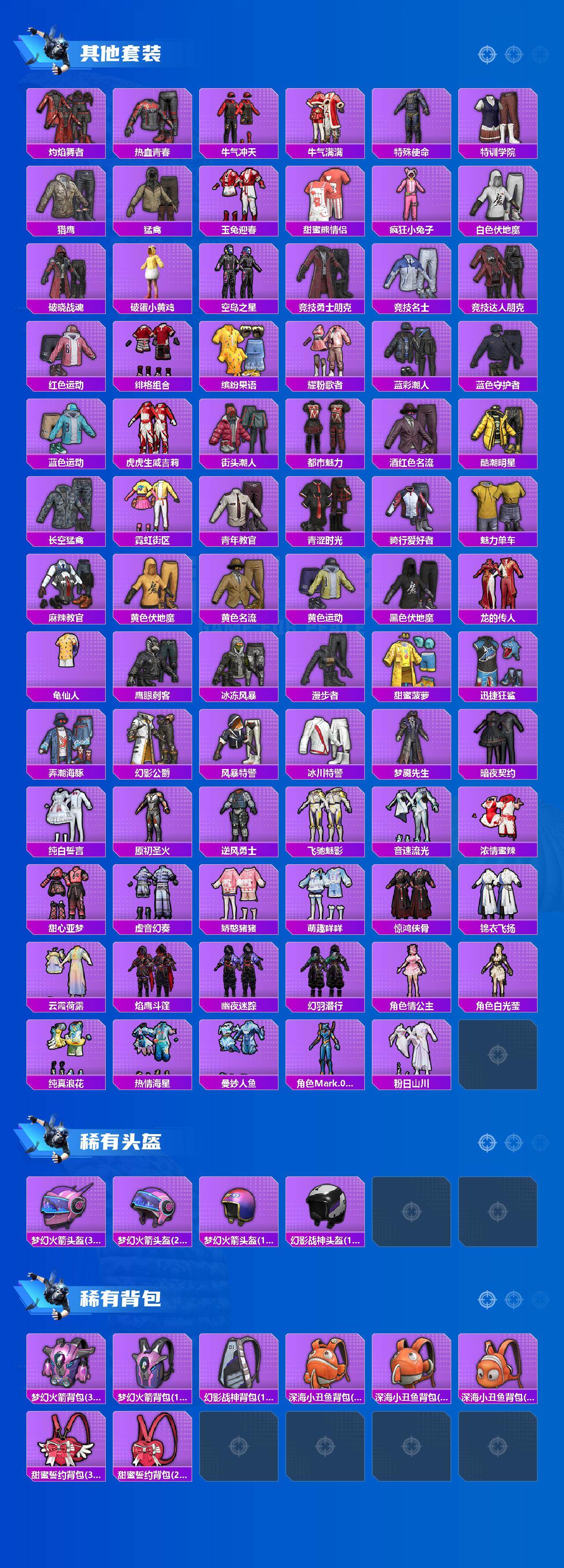 【热门品类】:粉装-梦幻火箭,套装-浪漫天命,套装-都市猎人,套装-派对舞王,套装-小丑鱼,套装-龟仙人,角色-Mark.06