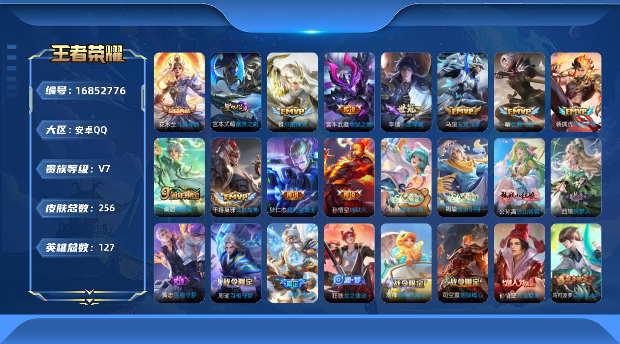 [16852776]安卓Q-256皮肤-1典藏皮肤-11传说-62史诗