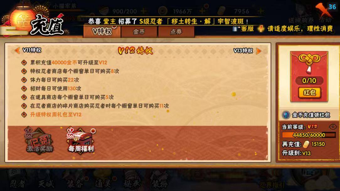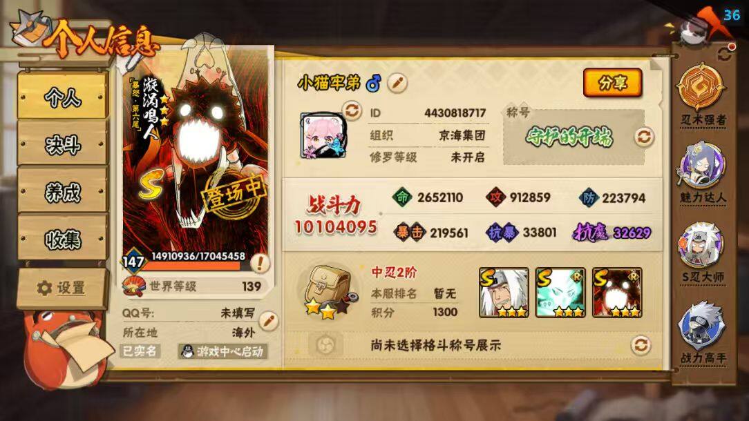 - [16696595]VIP10,688w战斗力,金身水门66片,须佐止水70片。