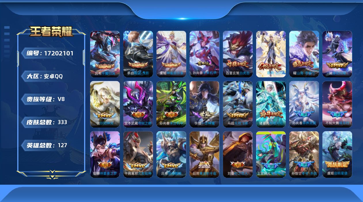 [17202101]安卓Q-V8-333皮肤-3典藏皮肤-20传说-100史诗