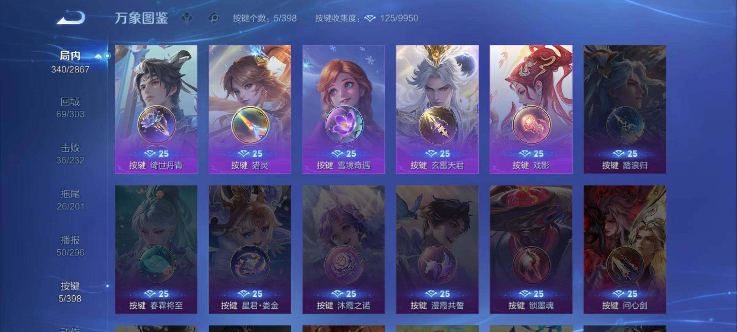裴擒虎李小龙,上官婉儿梁祝,吕布御风骁将,韩信飞衡,虞姬霸王别姬,干将莫邪冰霜恋舞曲,赵云引擎之心,孙悟空孙行者,李白诗剑行,桑启鸣野蒿,澜愿照·九州拓