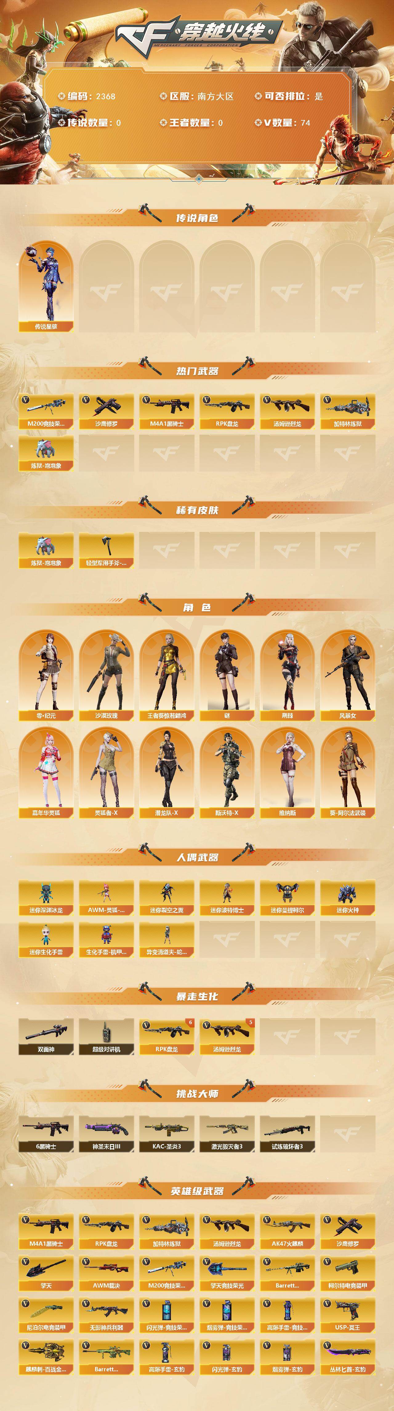 [17204591]南方大区-74V-0王者武器数-0炫金武器数