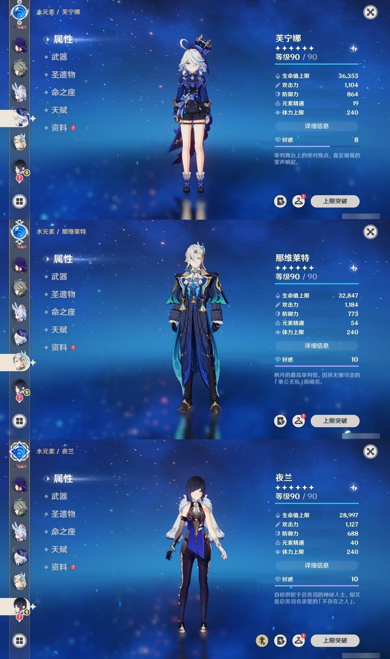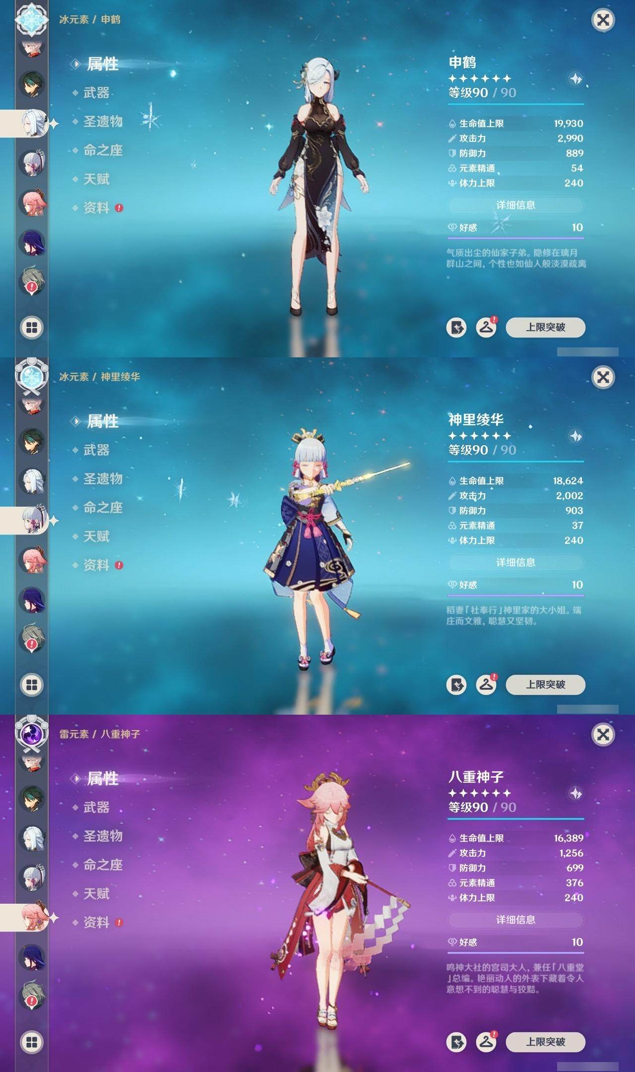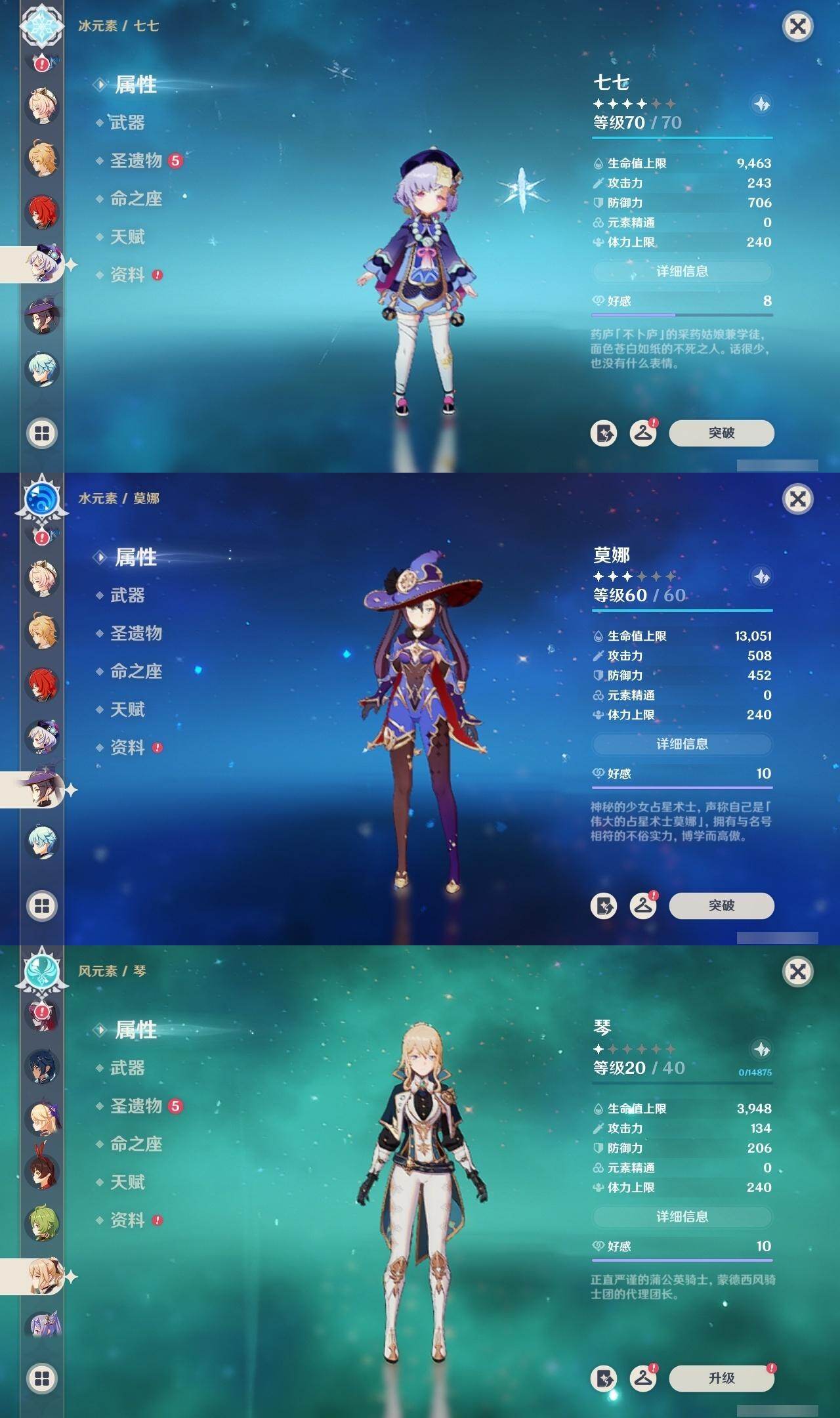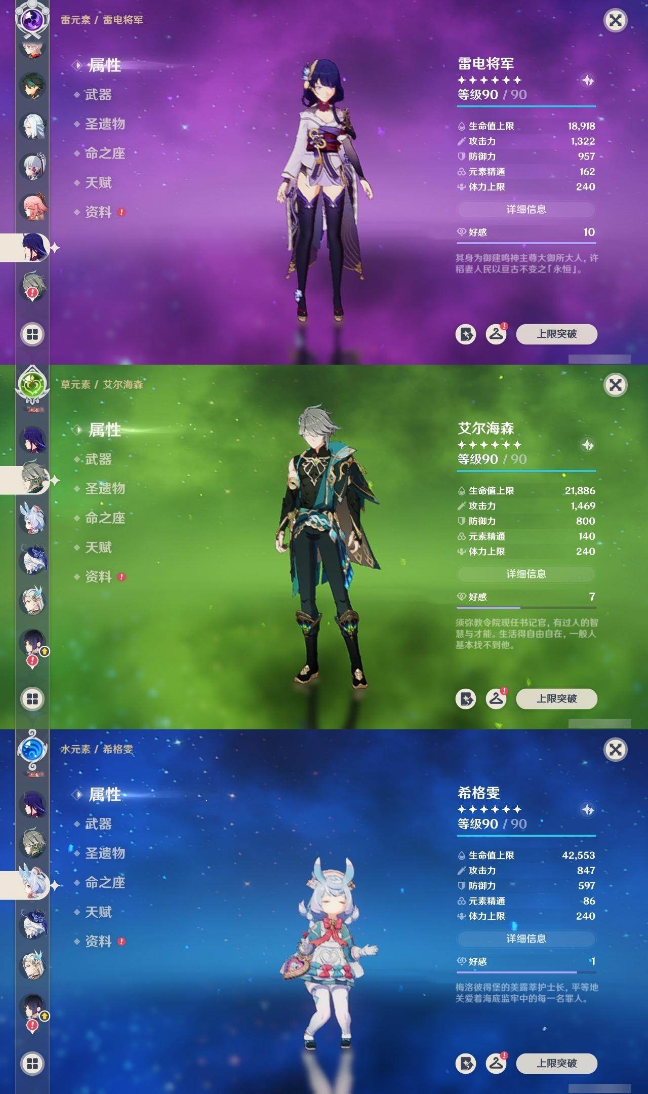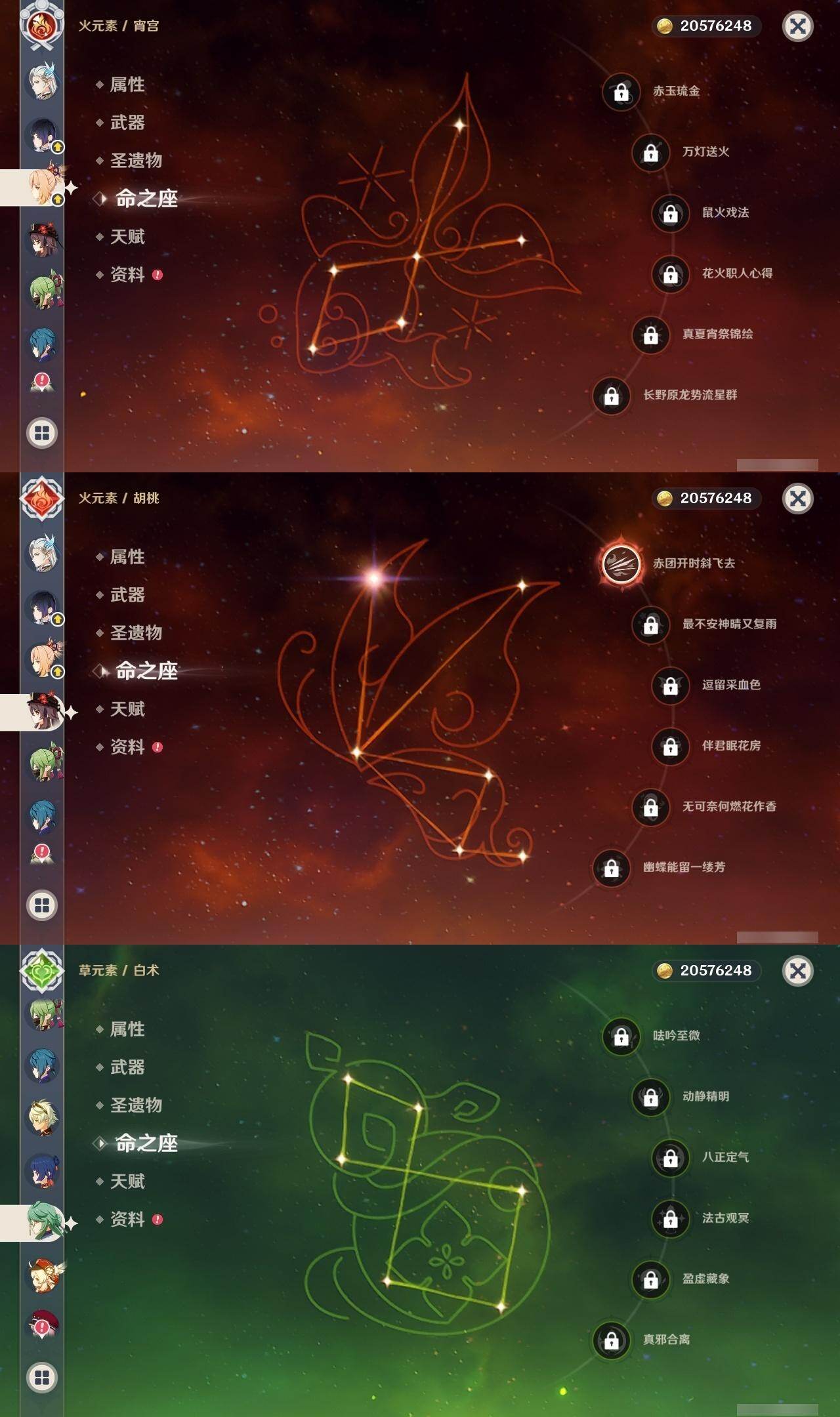 0命希格雯,0命闲云,0命芙宁娜,0命那维莱特,0命白术,0命迪希雅,0命艾尔海森,0命流浪者,满命纳西妲,2命提纳里,0命夜兰,0命八重神子,0命申鹤,0命雷电将军,0命枫原万叶,2命神里绫华,0命钟离,1命胡桃,0命魈,0命宵宫,0命温迪,0命可莉,0命珊瑚宫心海,1命刻晴,2命七七,2命琴,2命莫娜,4命迪卢克,0命恰斯卡,0命奈芙尔,0命杜林,精1千夜浮梦,精1飞雷之弦振,精1雾切之回光,精1护摩之杖,精1天空之翼,精1天空之刃,精1天空之卷,精1风鹰剑,精1血染荒城