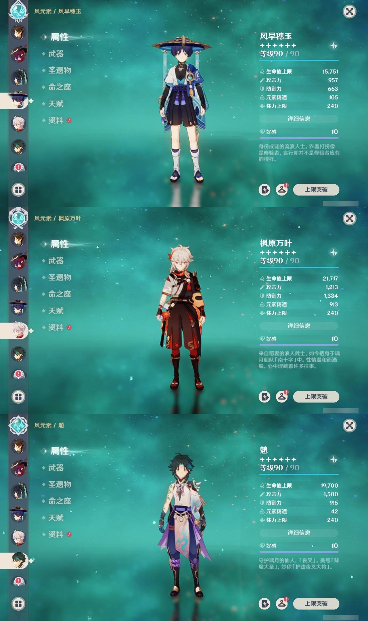 珊瑚宫心海,钟离,枫原万叶,魈,申鹤,神里凌华,八重神子,雷电将军,宵宫,胡桃,可莉,温迪,迪卢克,七七,莫娜,琴,刻晴
