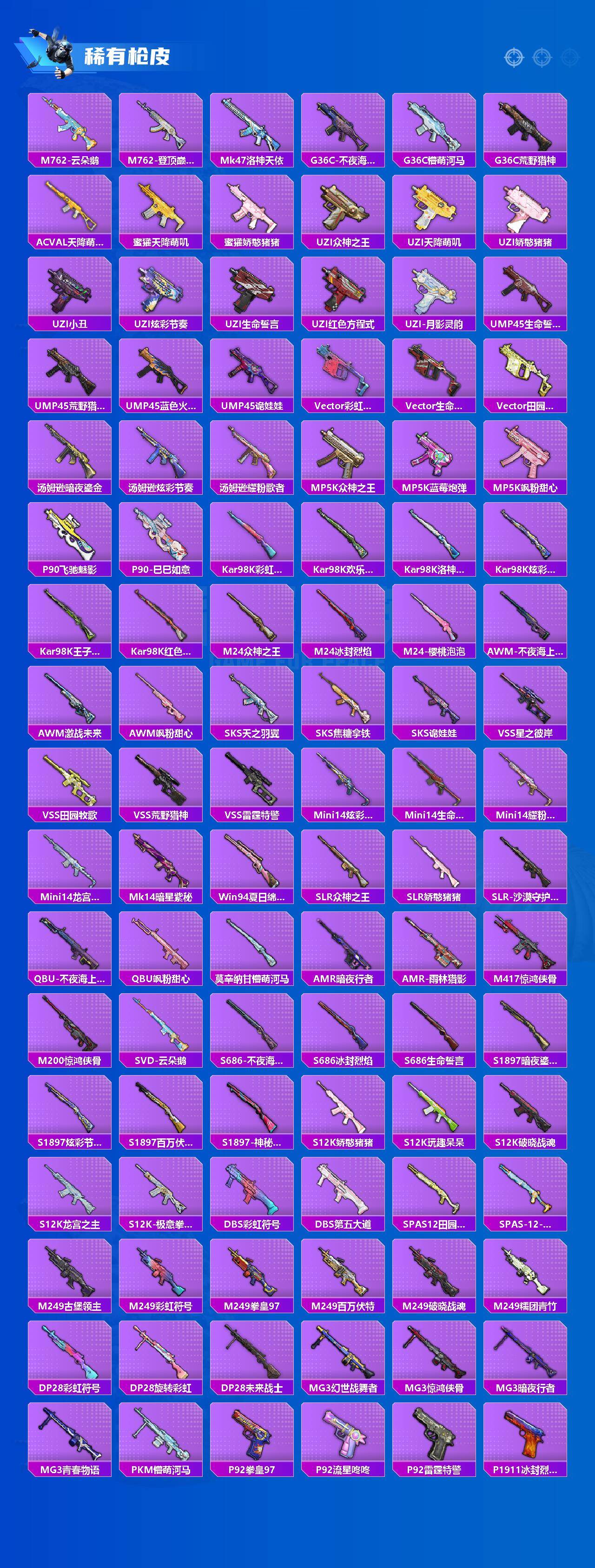 M416-仓鼠灰灰,M762-风花雪月,AWM-激战未来,M249-古堡领主