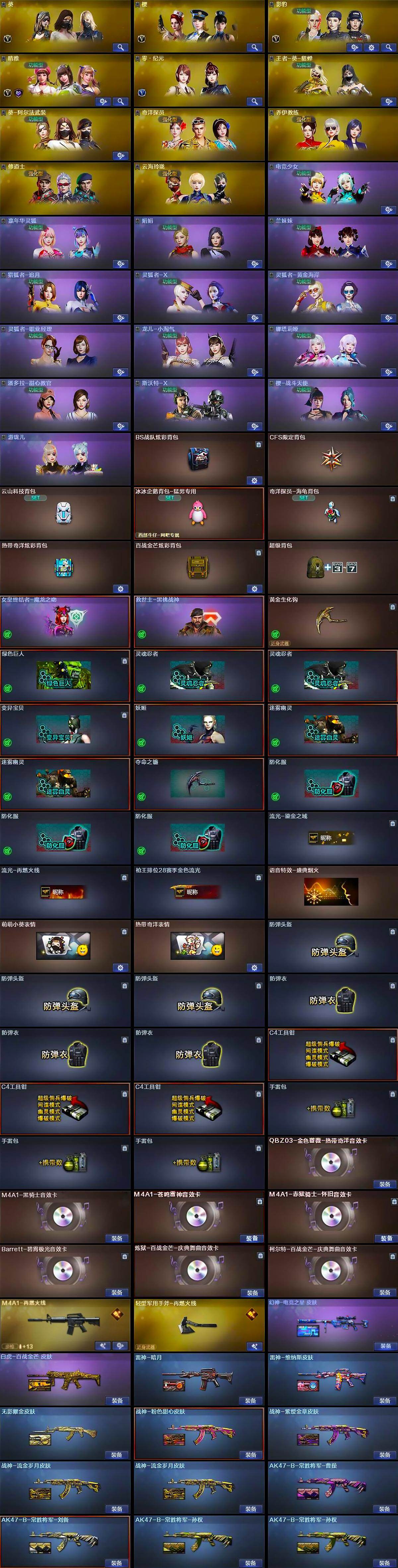 - [16844923]四川一区-68V-5王者-0炫金 【热门武器】:死亡之眼,M4A1-黑骑士*2,汤姆逊-烈龙*6,RPK-盘龙*6,加特林-炼狱*3,沙鹰-修罗*2,金刚伞,高爆手雷-幻兽 【王者炫金武器】:王者之翼,王者之力,烈龙-悦心,王者之灵 【皮肤】:雷神-星空,火麒麟-平天大圣,毁灭-星空*2,M4A1-千变-孔明皮肤,黑龙-能量核心,修罗-能量核心*2 【角色】:葵,樱,王者之瞳,狐影,暗夜-X,北极狐-X,娟娟,灵狐者-X,灵狐者-黄金海岸,龙儿,龙儿-小淘气,麻雀,潘多拉-X,蜀雪,铁骑荣耀 【人偶武器】:迷你深渊冰龙,迷你裂空之翼,夺魂,生化手雷-机甲核心*2 【暴走生化】:死亡之眼,超级对讲机 【挑战大师】:AK47-冰龙粉碎者,激光毁灭者III,神圣爆裂者-末日III 【英雄级武器】:M4A1-千变,AK47-火麒麟,M4A1-黑龙*3,M4A1-雷神*5,M4A1-黑骑士*2,AK47-无影,M4A1-死神,AK12-天启,AN94-超新星*4,M4A1-武圣,AK47-机械迷城,M4A1-龙血,M4A1-猎神,AWM-天龙,Barrett-毁灭*3,Barrett-极光,RPK-盘龙*6,加特林-炼狱*3,炼狱-悦蓝-觉醒版,汤姆逊-烈龙*6,AA-12-雷霆,沙鹰-修罗*2,沙鹰-天神*3,沙鹰-幻兽,Glock18-武圣,屠龙*2,龙啸,擎天,麒麟刺*2,女皇利刃-幻兽,高爆手雷-雷霆,高爆手雷-幻兽,闪光弹-雷霆,闪光弹-幻兽,烟雾弹-雷霆,烟雾弹-幻兽 【道具】:战舰背包,炫彩背包,老虎背包,背包-洛丽塔,超级背包,绿色巨人,灵魂忍者*2,变异宝贝,妖姬,迷雾幽灵,生化弹匣,夺命之镰,防化服*2,防弹头盔*5,防弹衣*7,C4工具钳*4,手雷包*6 【特殊枪械】:2黑骑士,6烈龙,6盘龙,3炼狱