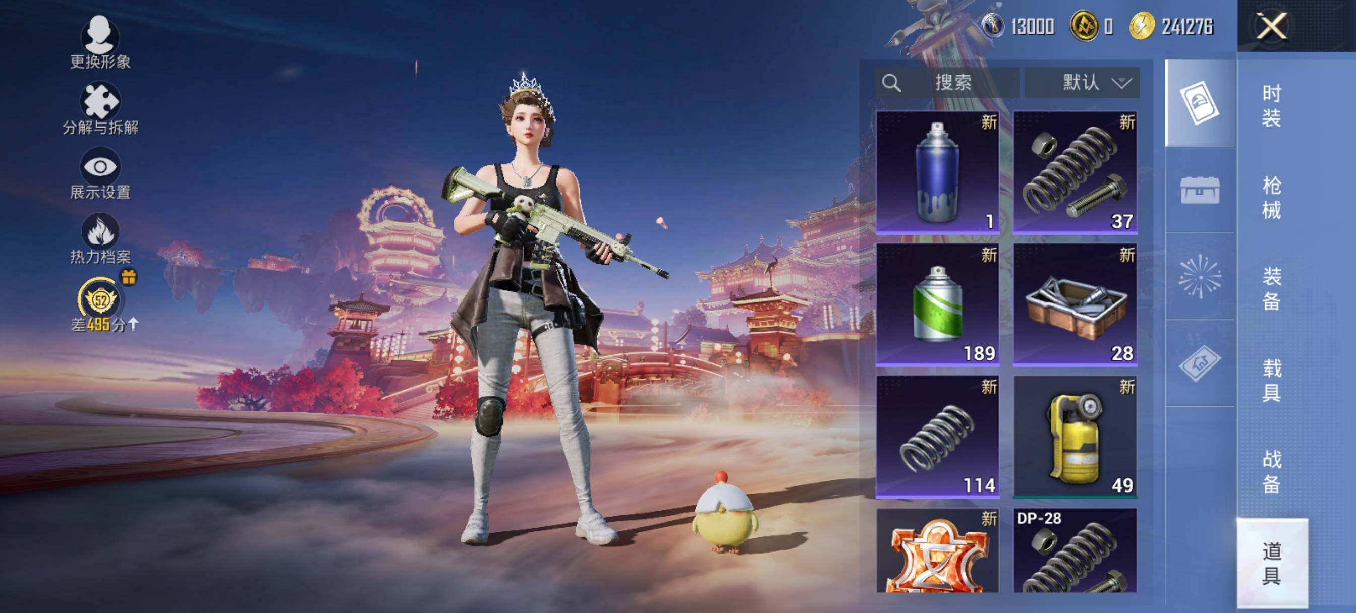 - [16329159]【特价出售/店主推荐】 安卓 手Q-2粉装-3特效枪-0载具-1粉色飞行器-35367热力值-4王牌印记-95套装-129枪皮【热门品类】:套装-龟仙人【粉色套装】:粉装-莲影清波,角色-荧海星豚【粉色枪皮等级】:AKM-绿萝繁花(五级),Kar98K-巳巳如意(五级),DP-28-豹影疾电(五级)【粉色枪皮】:AKM-绿萝繁花,Kar98K-巳巳如意,DP-28-豹影疾电