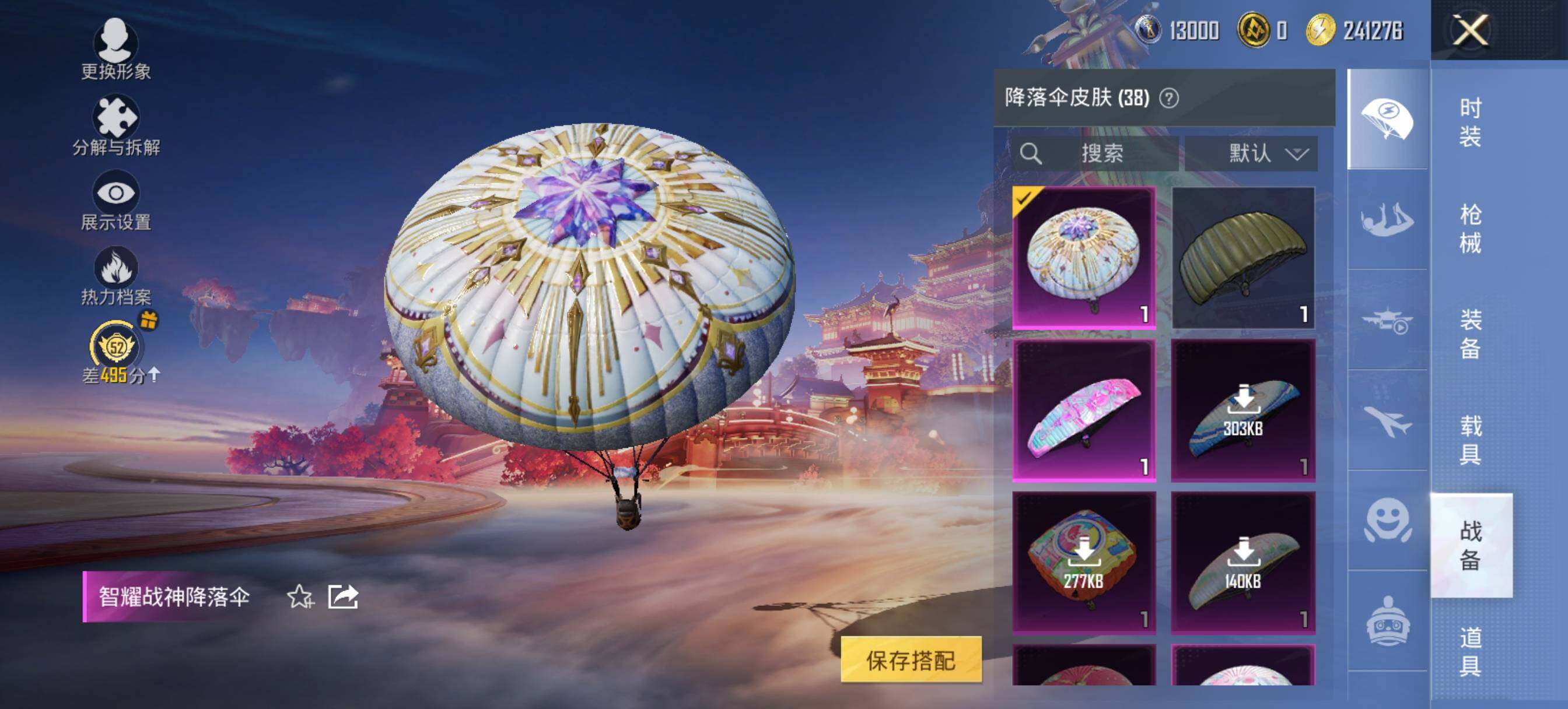 【粉色降落伞】:百万伏特降落伞,甜心娃娃降落伞,彩虹甜喵降落伞,旋转彩虹降落伞,未来歌姬降落伞,炫光之旅降落伞,莲影清波降落伞,智耀战神降落伞,炫彩糖果降落伞