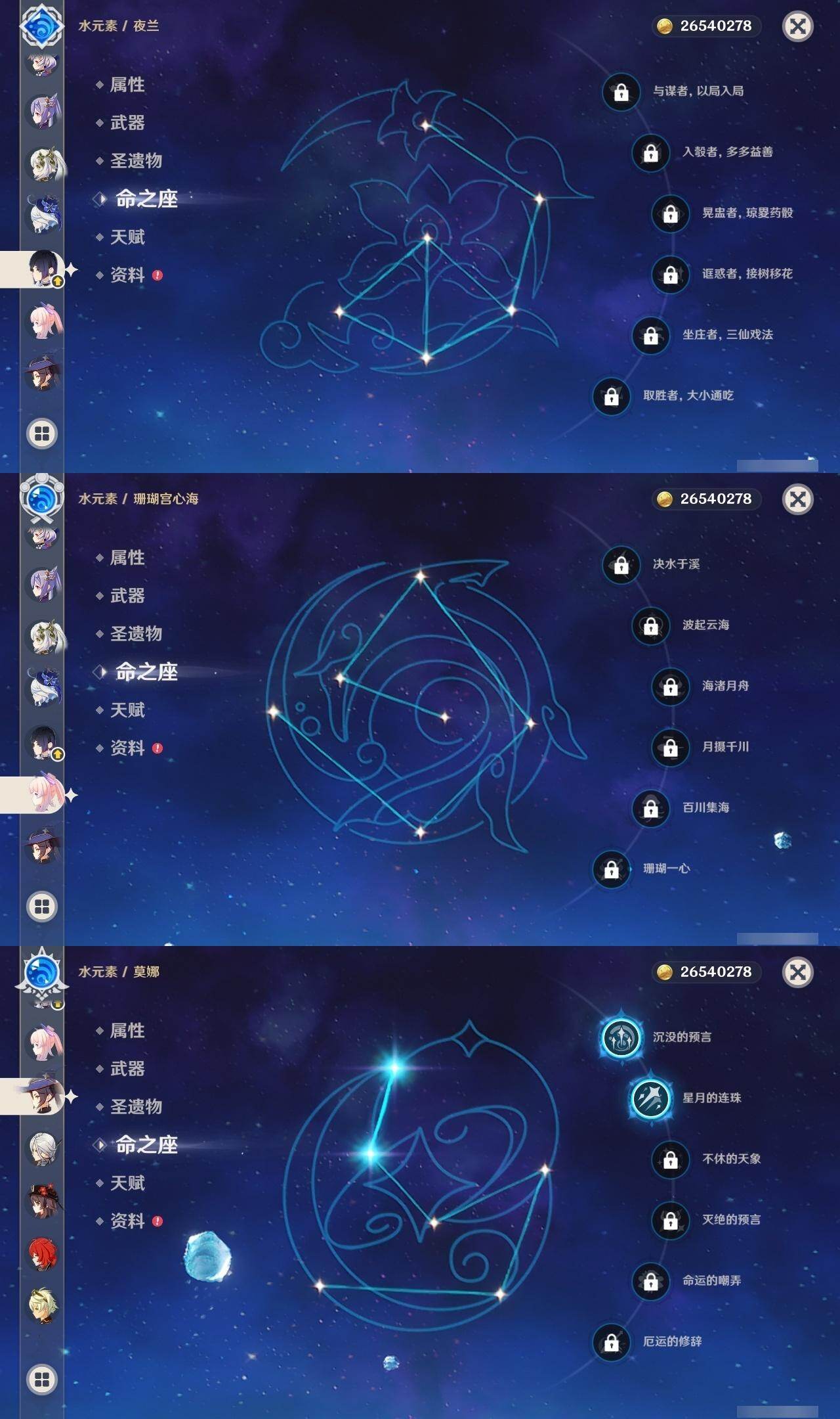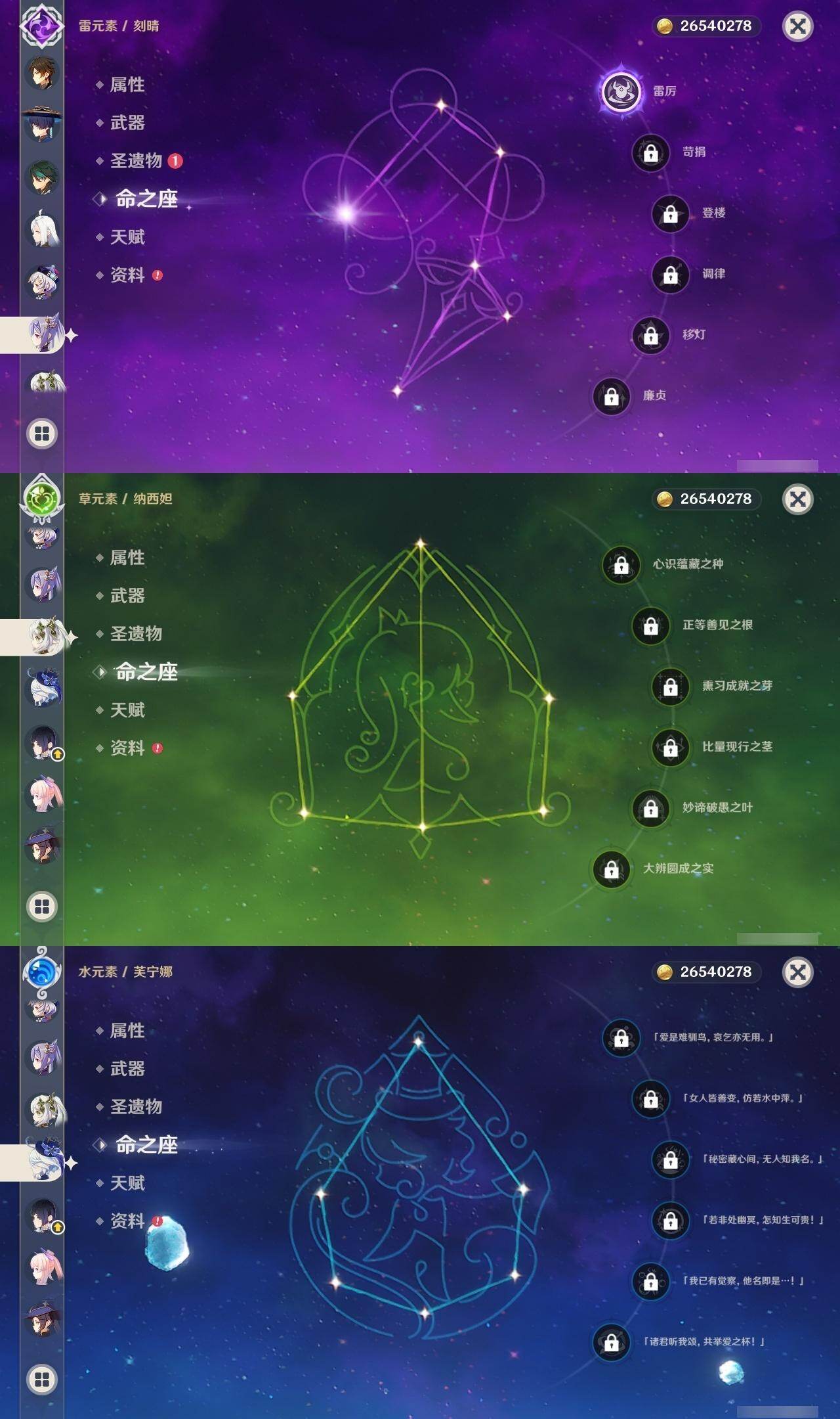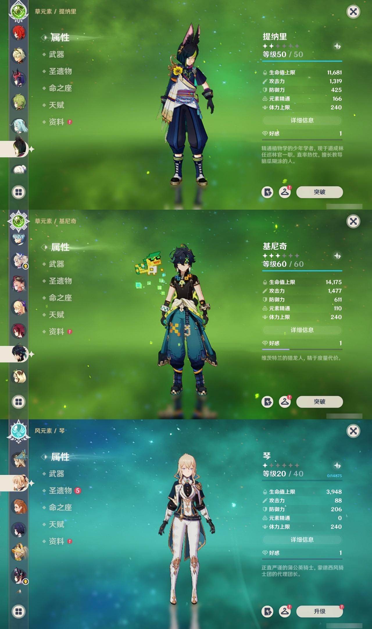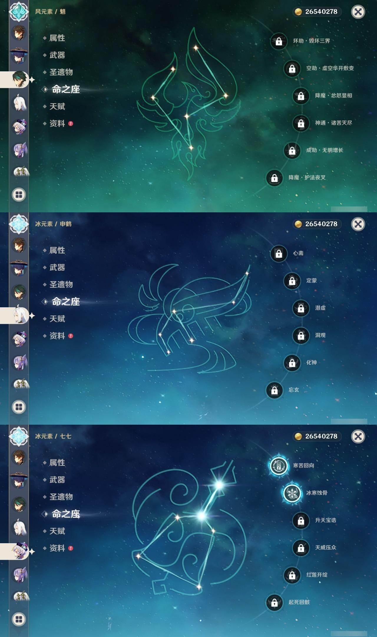 0命阿蕾奇诺,0命芙宁娜,0命流浪者,0命纳西妲,1命提纳里,0命夜兰,0命申鹤,0命雷电将军,0命枫原万叶,满命神里绫华,0命钟离,1命胡桃,0命魈,0命珊瑚宫心海,1命刻晴,2命七七,0命琴,2命莫娜,2命迪卢克,0命基尼奇,0命哥伦比娅,精1赤月之形,精1千夜浮梦,精1息灾,精1薙草之稻光,精1雾切之回光,精1护摩之杖,精1四风原典,精1天空之翼,精1阿莫斯之弓,精1天空之刃,精1天空之傲