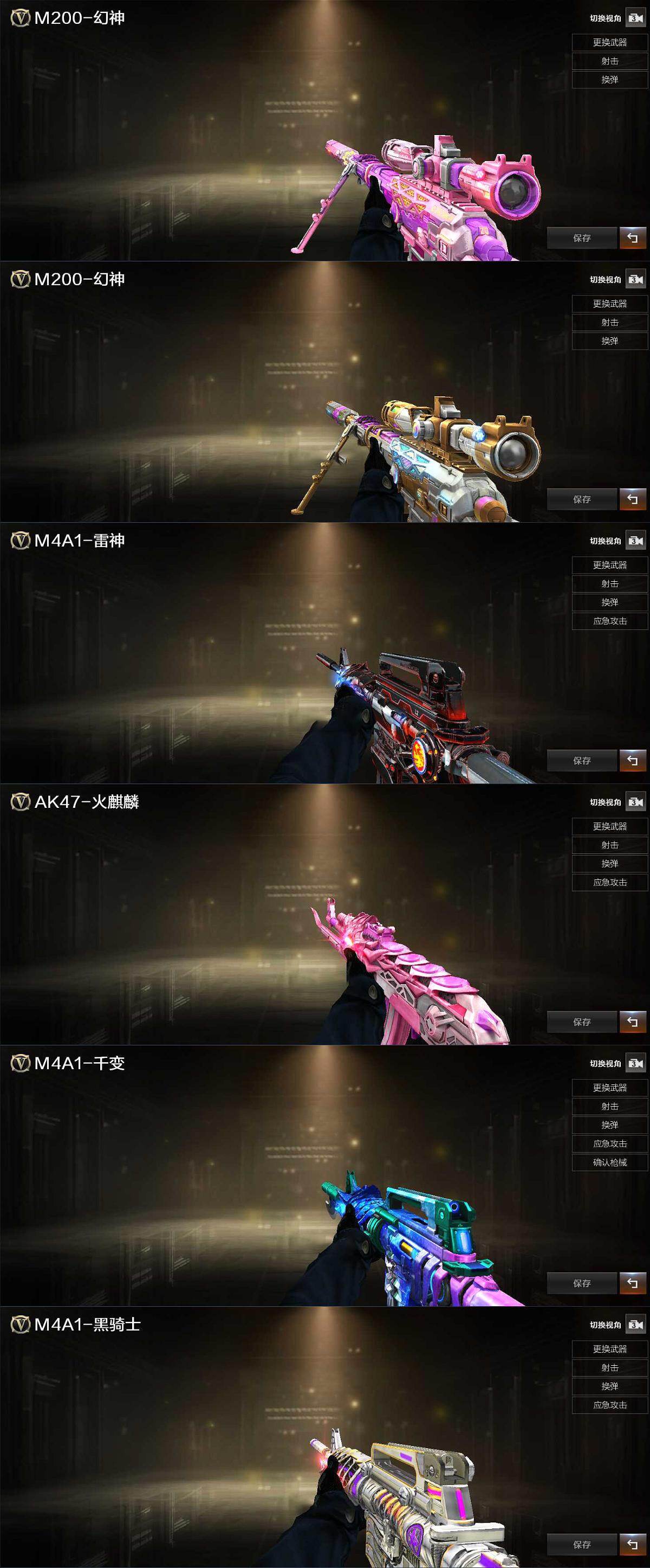 【热门武器】:QBZ03-金色蔷薇,Scar Light-白虎,M200-幻神,金色蔷薇-古蛇迷踪,修罗-古蛇迷踪,荣耀世冠-火麒麟,荣耀世冠-柯尔特,Cat-刀锋,M4A1-黑骑士,USP-雷暴