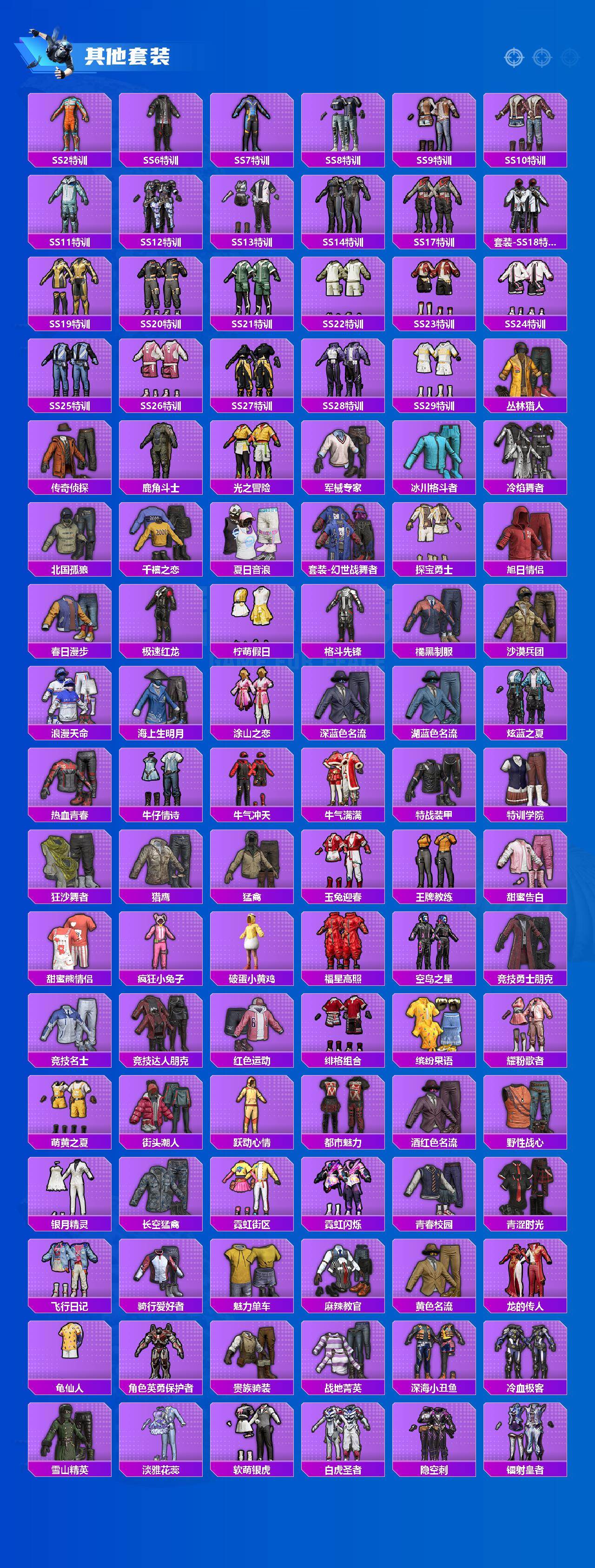 【粉色套装】:粉装-宝贝奶油派,粉装-诡面斩,粉装-冰霜白皇,粉装-炙焰红王,粉装-香水柠檬,粉装-星之彼岸,粉装-暗夜玫瑰,角色-洛天依,角色-茉莉星,粉装-莲影清波,角色-美雪,套装-创世·救赎,角色-星梦奇缘,角色-守护天翼,角色-萨利娅,角色-智耀战神,粉装-幻彩电音