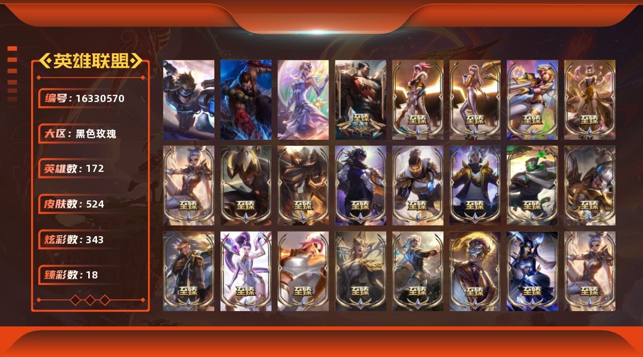 [16330570]【特价出售/店主推荐】铂金段位-172英雄-524皮肤-343炫彩-3终极-36神话-58限定-55传说-121史诗