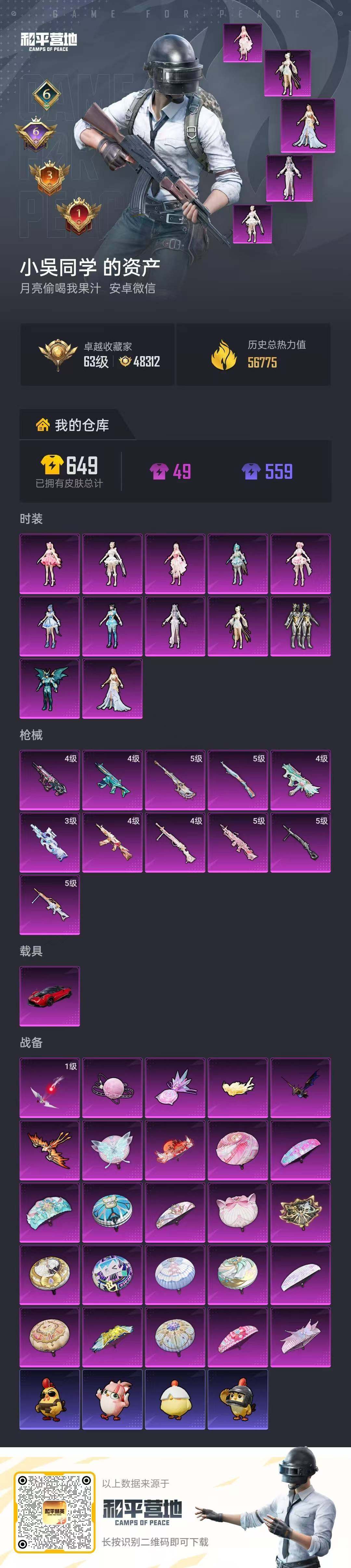 [16767646]【特价出售/店主推荐】安卓 微信-12粉装-11特效枪-1载具-6粉色飞行器-57379热力值-6王牌印记-122套装-177枪皮