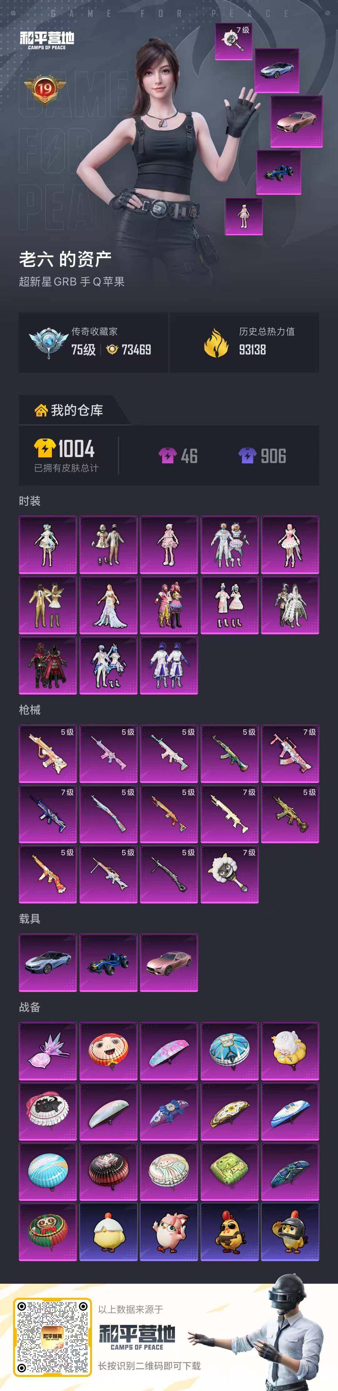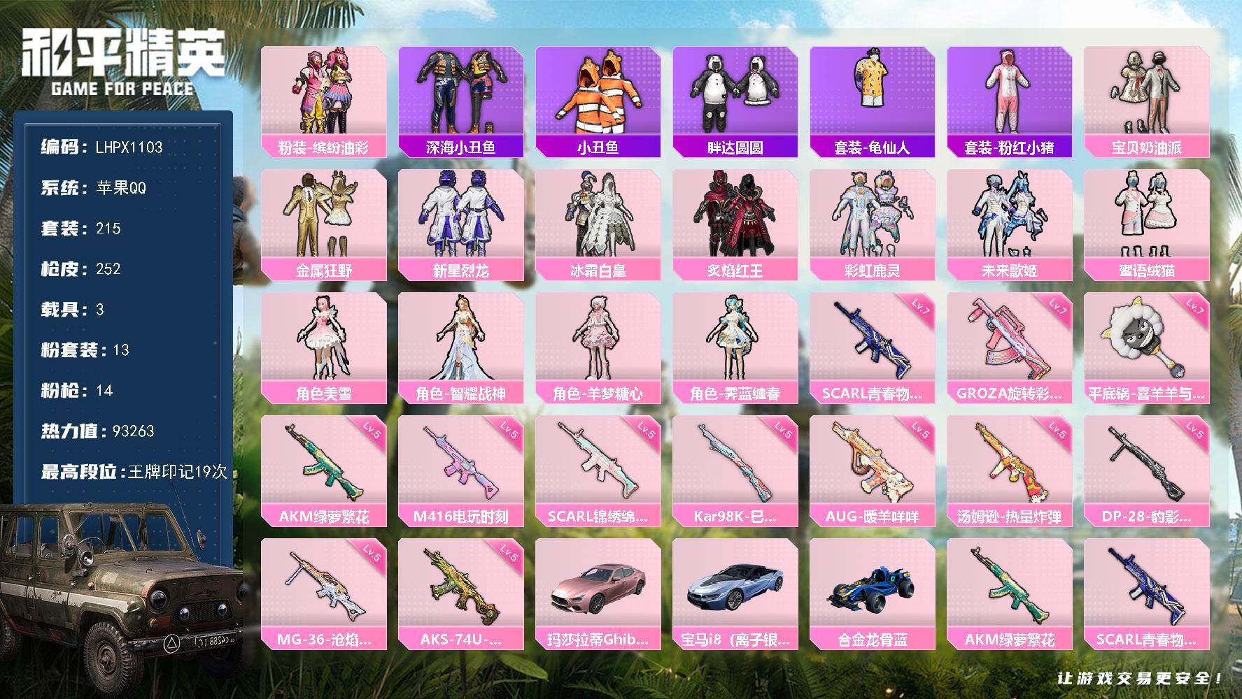[16856844]可二次【特价出售/店主推荐】苹果 手Q-13粉装-14特效枪-3载具-1粉色飞行器-93263热力值-19王牌印记-215套装-252枪皮