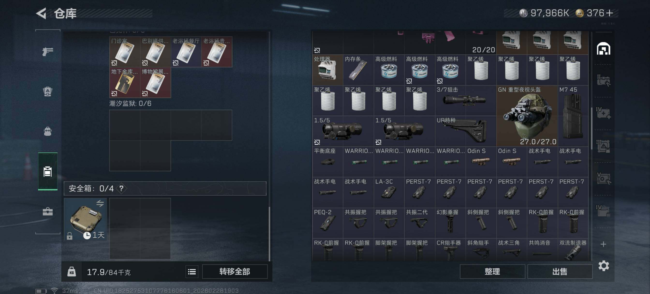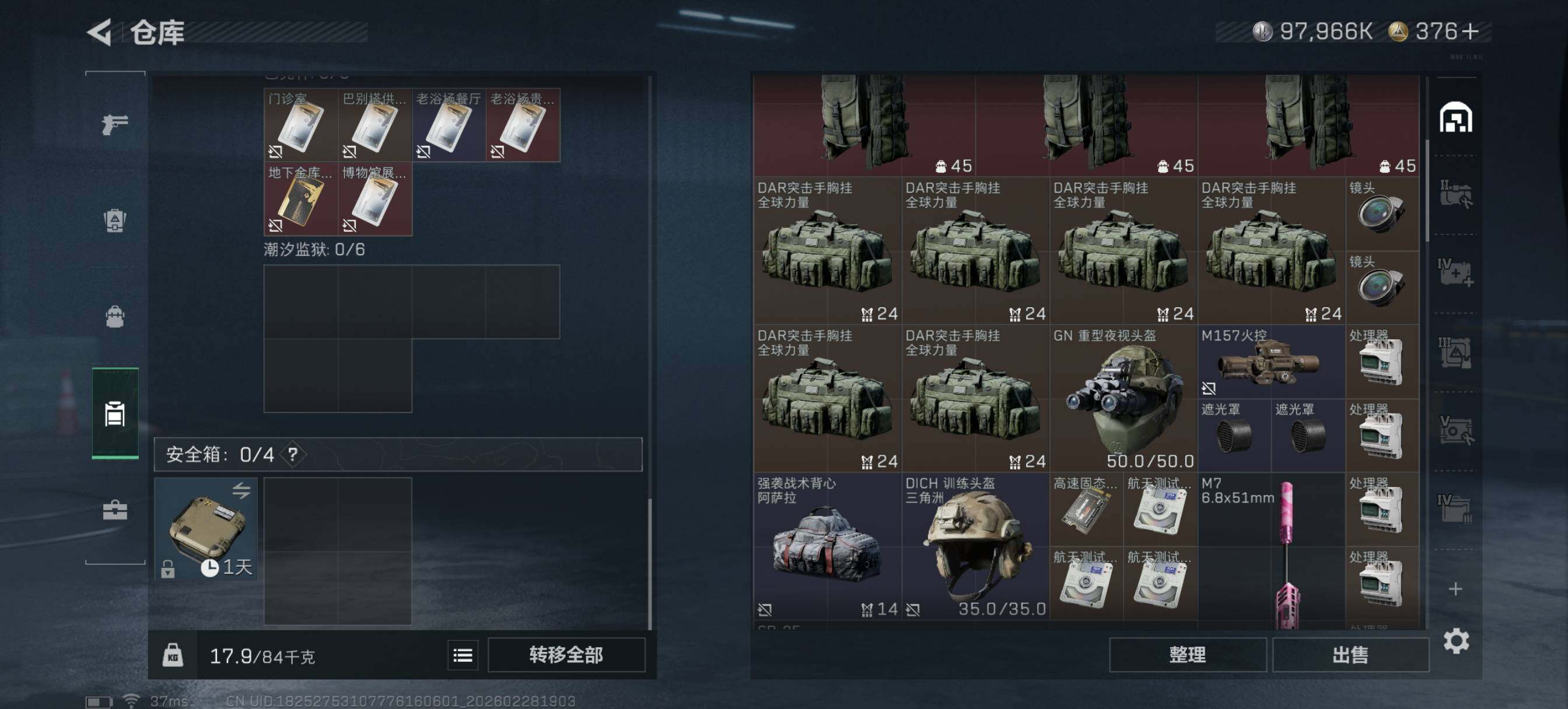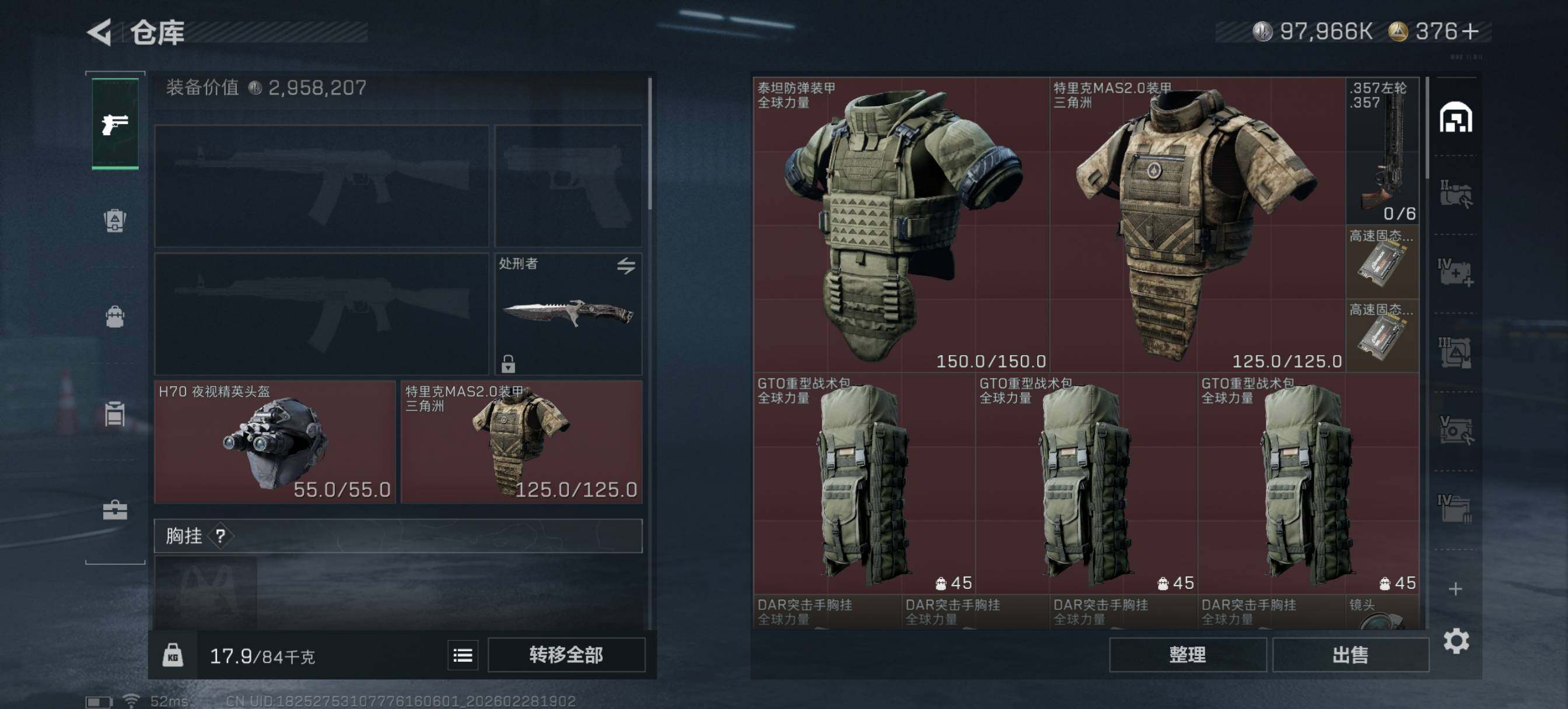 - [16441405]18m总资产-1326k哈伏币-56烽火等级-钻石-45战场等级-军士长 【干员外观】:骇爪-维什戴尔,深蓝-不破誓约,红狼-电锯惊魂,露娜-金牌射手 【近战皮肤】:近战-信条,近战-黑鹰 【传说外观】:M4A1突击步枪-阿米娅,ASh-12战斗步枪-鹅鸭杀,SG552突击步枪-运动员,SCAR-H战斗步枪-启航,G3战斗步枪-骑士,P90冲锋枪-信条,QCQ171冲锋枪-鹅鸭杀,M250通用机枪-骑士之心,QJB201轻机枪-鹅鸭杀,SR-25射手步枪-信条,R93狙击步枪-维什戴尔 【史诗外观】:SR-25射手步枪-天命,ASh-12战斗步枪-无极限,K416突击步枪-冬日风情,M7战斗步枪-百步穿杨,SCAR-H战斗步枪-囚徒,G3战斗步枪-流沙送葬,AS Val突击步枪-百步穿杨,K437突击步枪-守护者,MP5冲锋枪-战术竞备,MP5冲锋枪-竞技风,Vector冲锋枪-百步穿杨,Vector冲锋枪-异域战争,SR-3M紧凑突击步枪-战术竞备,MP7冲锋枪-守护者,QJB201轻机枪-炽焰,Mini-14射手步枪-守护者,M14射手步枪-工业狂潮,SV-98狙击步枪-猎鳄行动,M700狙击步枪-竞技风,M700狙击步枪-百步穿杨,M700狙击步枪-哈夫克警备,AWM狙击步枪-无极限,AWM狙击步枪-流沙送葬,复合弓-守护者 【稀有外观】:沙漠之鹰-天际线,M4A1突击步枪-繁盛,AKM突击步枪-战术演练,AKM突击步枪-肃杀,ASh-12战斗步枪-繁盛,M7战斗步枪-精英联盟,M7战斗步枪-捣蛋鬼,SG552突击步枪-2026,SG552突击步枪-贴花艺术,SCAR-H战斗步枪-荣耀列队,SCAR-H战斗步枪-黄昏,G3战斗步枪-战术演练,G3战斗步枪-主宰*2,MP5冲锋枪-弄臣,MP5冲锋枪-哈夫克卫队,P90冲锋枪-医疗协议,P90冲锋枪-黄昏,Vector冲锋枪-先锋,UZI冲锋枪-亚特兰蒂斯,野牛冲锋枪-公平竞技,SMG-45-行动开启,SMG-45冲锋枪-幻影结构,勇士冲锋枪-主宰,勇士冲锋枪-冰天雪地,MP7冲锋枪-钢铁之躯,M1014霰弹枪-幻影结构,S12K霰弹枪-战术演练,M249轻机枪-战损,M249轻机枪-冰天雪地,QJB201轻机枪-黄昏,QJB201轻机枪-哈夫克卫队,Mini-14射手步枪-荣耀列队,SKS射手步枪-弄臣,SR