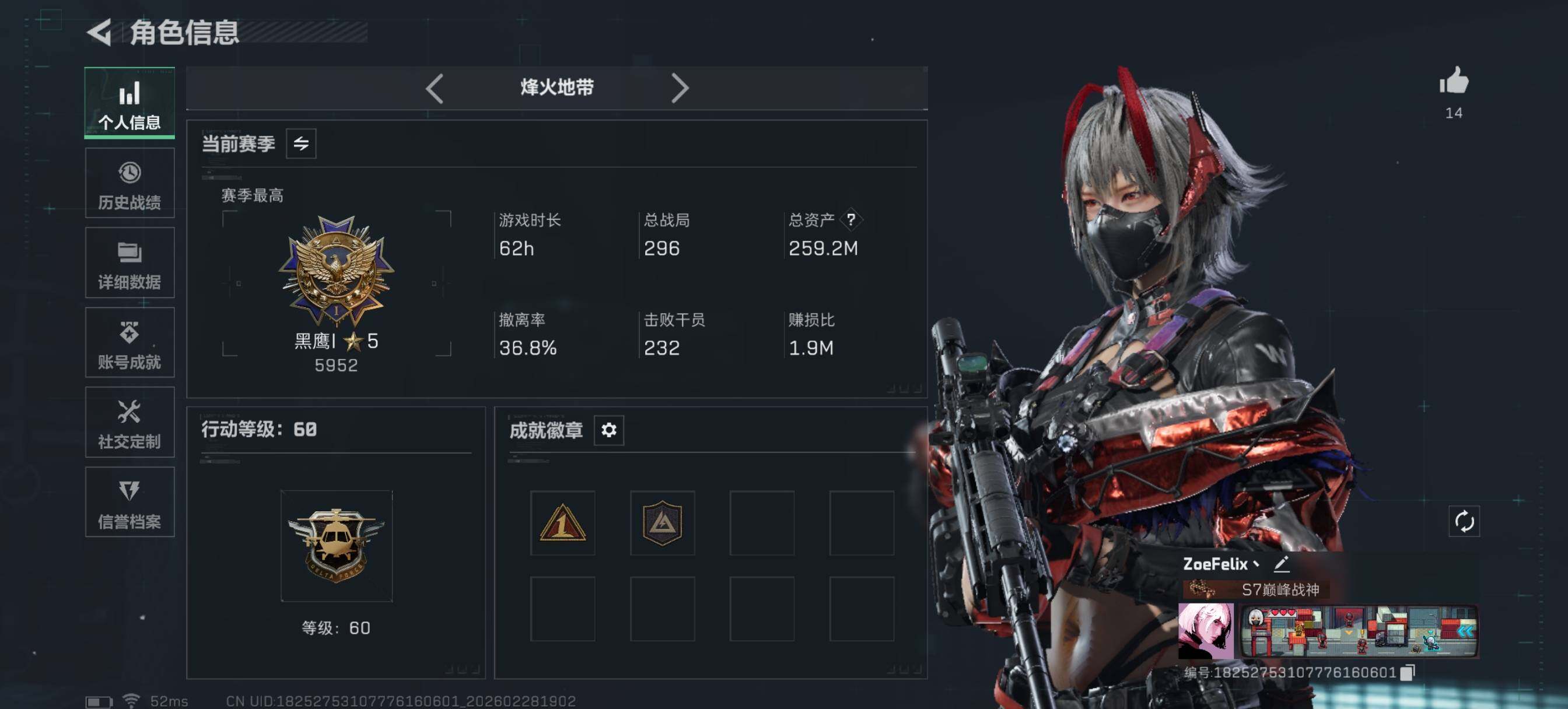 [17216035]【特价出售/店主推荐】259m总资产-98095k哈伏币-60烽火等级-黑鹰-1战场等级-无军衔