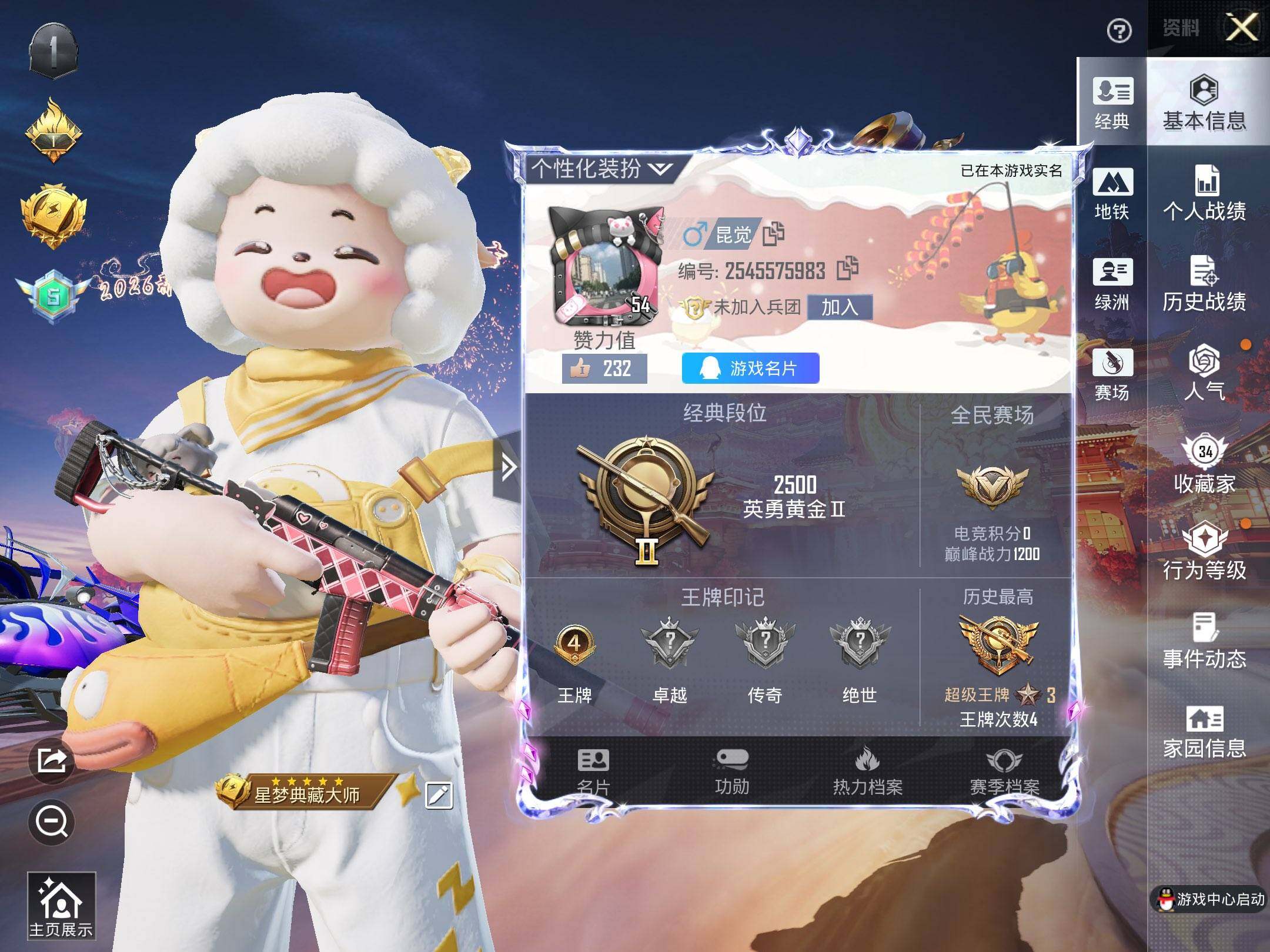 - [16084912]陕西一区-22V-2王者-0炫金 【热门武器】:QBZ03-金色蔷薇,M200-幻神 【音效卡】:炼狱-百战金芒-庆典舞曲音效卡 【皮肤】:M4A1-再燃火线,毁灭-黑大圣皮肤,M4A1-千变-孔明皮肤,屠龙-春桃 皮肤,轻型军用手斧-再燃火线 【角色】:云海玲珑,暗夜-X,北极狐-X,芳心审判者,风暴女,嘉年华灵狐,娟娟,灵狐者-X,龙儿,麻雀,潜龙队-X,青霞仙子,斯沃特-X,蜀雪,维纳斯,新娜塔莎,夜玫瑰-宠粉,影武者-X,游珑儿 【人偶武器】:AWM-灵狐-15周年嘉年华,迷你裂空之翼*2,迷你波特博士*3,夺魂,迷你牛牛,迷你火种,巴雷特-赏金猎人,灵狐娃娃手雷 【挑战大师】:冰龙粉碎者-白马银枪,激光毁灭者III-白马银枪*2,激光毁灭者III,试炼破坏者III,神圣爆裂者-末日III 【英雄级武器】:AK47-火麒麟,M4A1-雷神,无影-神兵利器,黑武士-锦绣游龙,QBZ03-金色蔷薇,M200-幻神,炼狱-百战金芒,烈龙-云海游龙,屠龙,擎天-云海游龙,麒麟刺-百战金芒,雷霆王者之锋-觉醒版,丛林匕首-玄豹,手雷-云海游龙,高爆手雷-玄豹*2,闪光弹-玄豹,烟雾弹-玄豹,烟雾弹-雷霆王者-觉醒版 【道具】:BS战队炫彩背包,云山科技背包,云海游龙炫彩背包,全能枪王背包,女皇终结者-背包,次元之矛-黄金背包,炫彩背包,百战金芒炫彩背包,虎牙炫彩背包,黄金曼提柯尔的背包,黄金超能特工背包,哔哩哔哩名片,女皇终结者-魔龙之吻,救世主-黑桃战神,绿色巨人,灵魂忍者*2,变异宝贝,迷雾幽灵*2,生化弹匣,夺命之镰,防化服*3,金色流光-枪王排位*2,星辰流光-枪王排位,枪王排位28赛季金色流光,语音特效-盛典烟火,萌萌小葵表情,云海游龙表情,防弹头盔*3,防弹衣*3,C4工具钳*3,手雷包*3 【特殊枪械】: