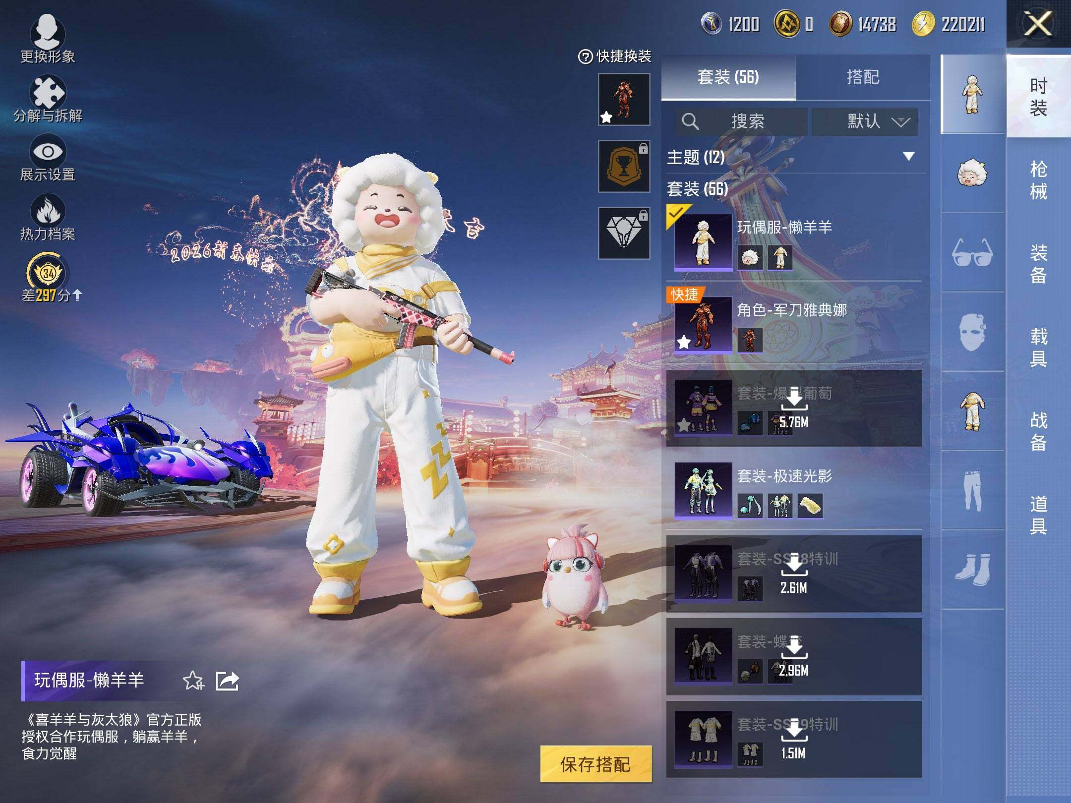 【稀有套装】:套装-极速光影,玩偶服-懒羊羊