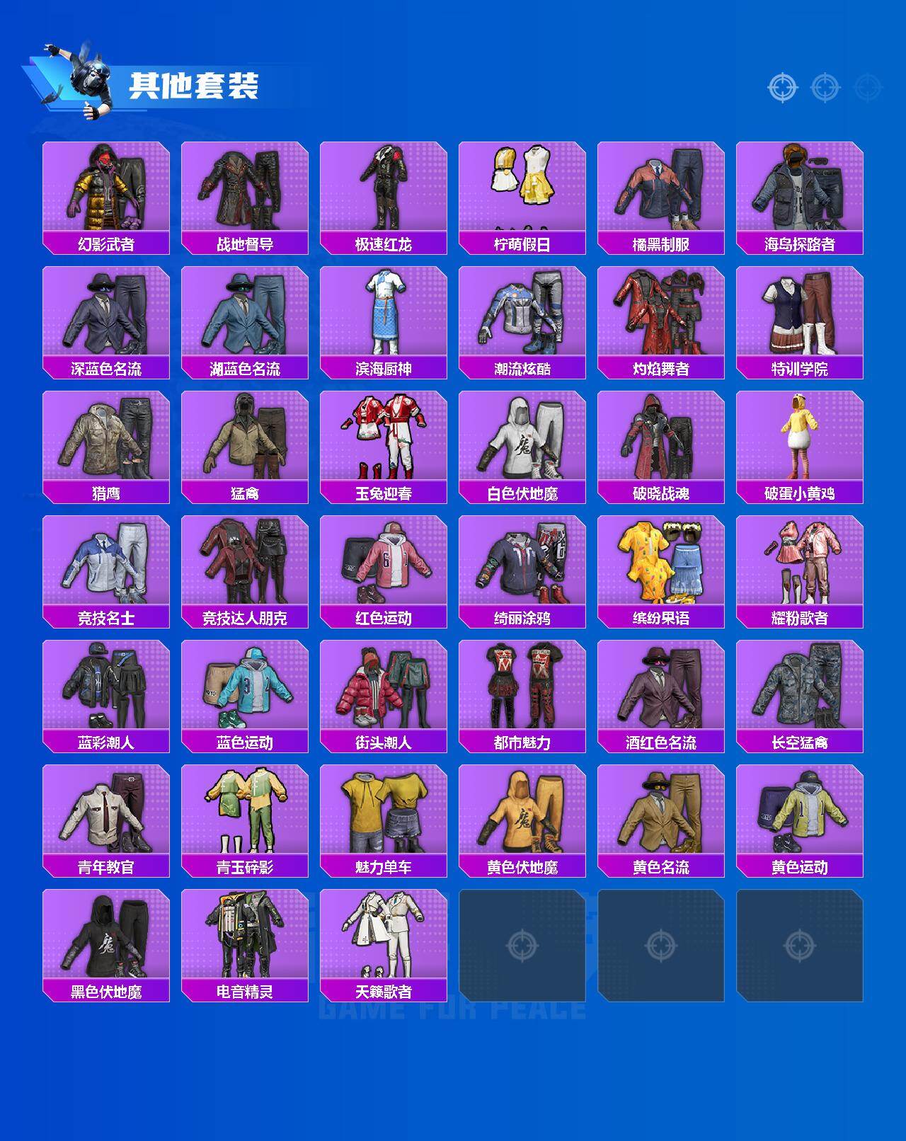 【稀有枪皮】:AUG-冰晶雪宝,AKM-破晓战魂,AKM-龙的传人,M16A4-幻世战舞者,SCAR-L-夜灯,SCAR-L-炫彩节奏,M416-蓝色火焰,GROZA-荧海星豚,AUG-耀粉歌者,AUG-绝对恒星,QBZ-洛神天依,M762-天降萌叽,M762-云朵鹅,M762-登顶巅峰,Mk47-洛神天依,ACE32-画境星梦,ARX-凌霄紫焰,UZI-天降萌叽,UMP45-夜灯,Vector-生命誓言,MP5K-画境星梦,JS9-凌霄紫焰,P90-巳巳如意,Kar98K-洛神天依,M24-炫彩节奏,M24-仲夏莫吉托,AMR-喜羊羊与灰太狼,SVD-云朵鹅,M1加兰德-画境星梦,S686-雪月幻音,S686-巳巳如意,S686-千金淑猫,S12K-夜灯,DBS-彩虹符号,AA12-G-画境星梦,SPAS-12-云朵鹅,M249-彩虹符号,MG3-折梦之诗,MG-36-凌霄紫焰,P92-凌霄紫焰,沙漠之鹰-云朵鹅,F57-绯影武装,突击盾牌-绝对恒星,大砍刀-云朵鹅,撬棍-咒蚀之裁,平底锅-凌霄紫焰,平底锅-画境星梦,破片手榴弹-巳巳如意