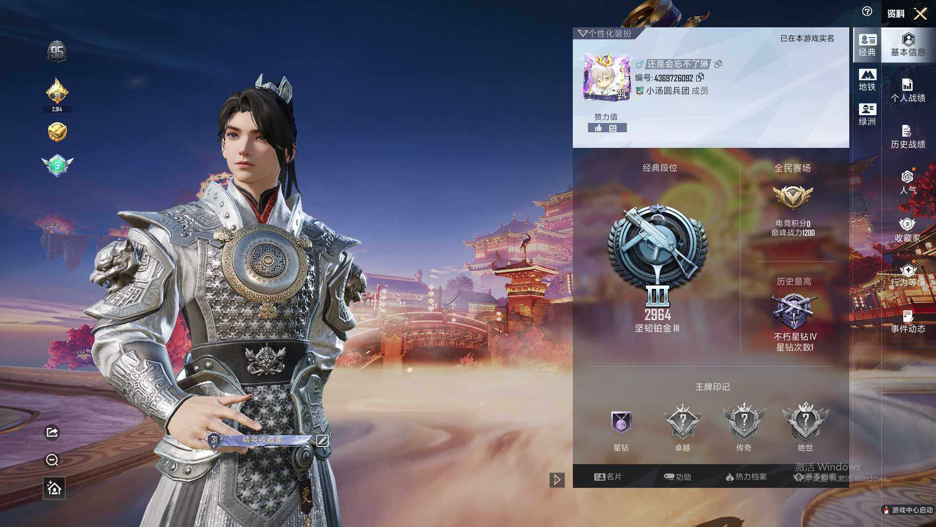 - [16671046]【店主推荐捡漏号!可直接换绑】 67416k哈伏币-136m流动资产-53烽火等级-黄金-1战场等级-无军衔 资产148m【干员外观】:骇爪-维什戴尔 【近战皮肤】:近战-黑鹰 【传说外观】:ASh-12战斗步枪-鹅鸭杀,SCAR-H战斗步枪-启航,QCQ171冲锋枪-鹅鸭杀,QJB201轻机枪-鹅鸭杀,R93狙击步枪-维什戴尔 【史诗外观】:MP5冲锋枪-战术竞备 【稀有外观】:QBZ95-1突击步枪-公平竞技,M7战斗步枪-捣蛋鬼,P90冲锋枪-黄昏 【普通外观】:SG552突击步枪-浅蓝涂装,M250通用机枪-条纹,QSZ92G-条纹 【载具外观】:轮式突击炮-荣耀 【挂饰】:挂饰-维什戴尔,挂饰-诡影喷火兵,挂饰-暗行哨兵,挂饰-启程