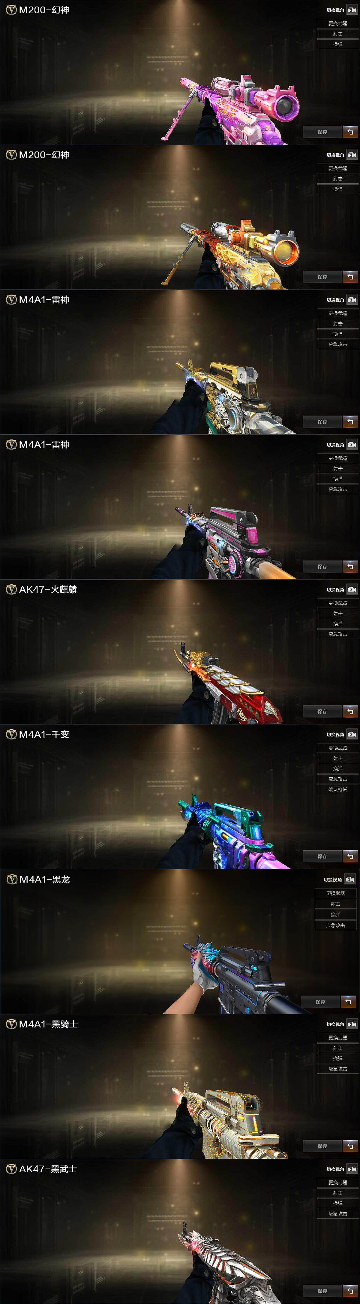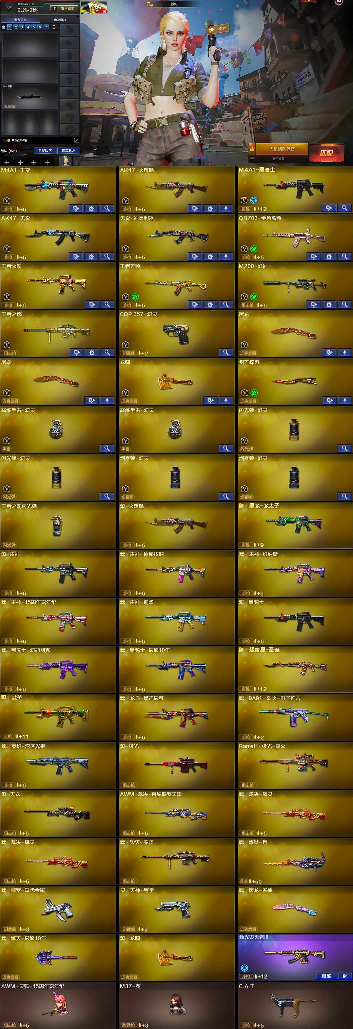 【皮肤】:幻神-宠儿-2021MVP,M200-幻神-N9-2022MVP,雷神-虎将,雷神-神秘按键 皮肤,火麒麟-华夏之心,M4A1-千变-孔明皮肤,M4A1-黑龙-361,黑骑士耀金皮肤,AK47-黑武士-361