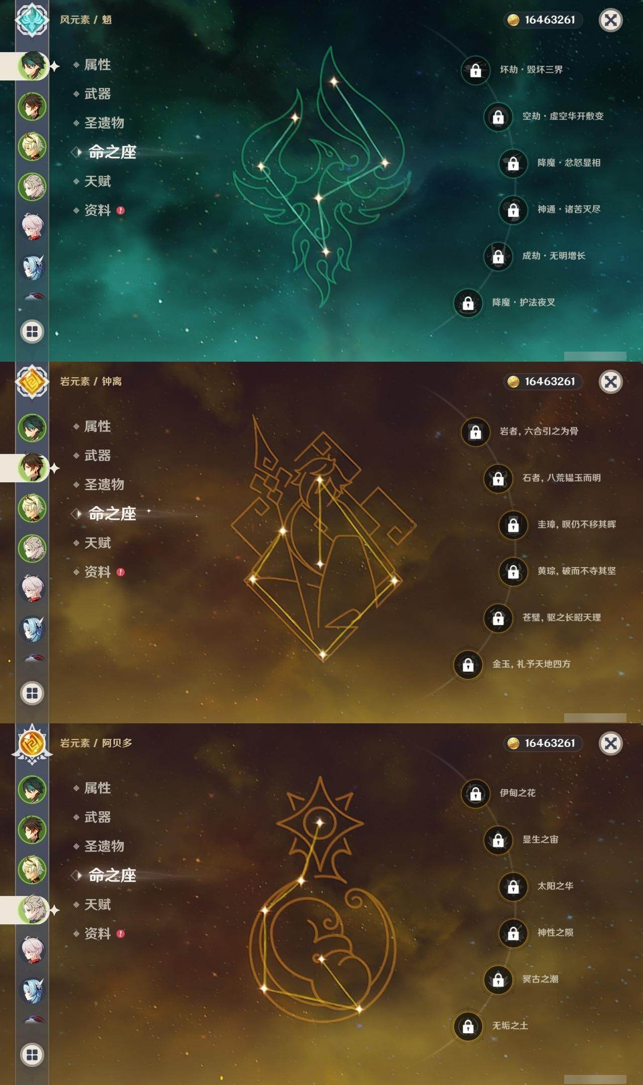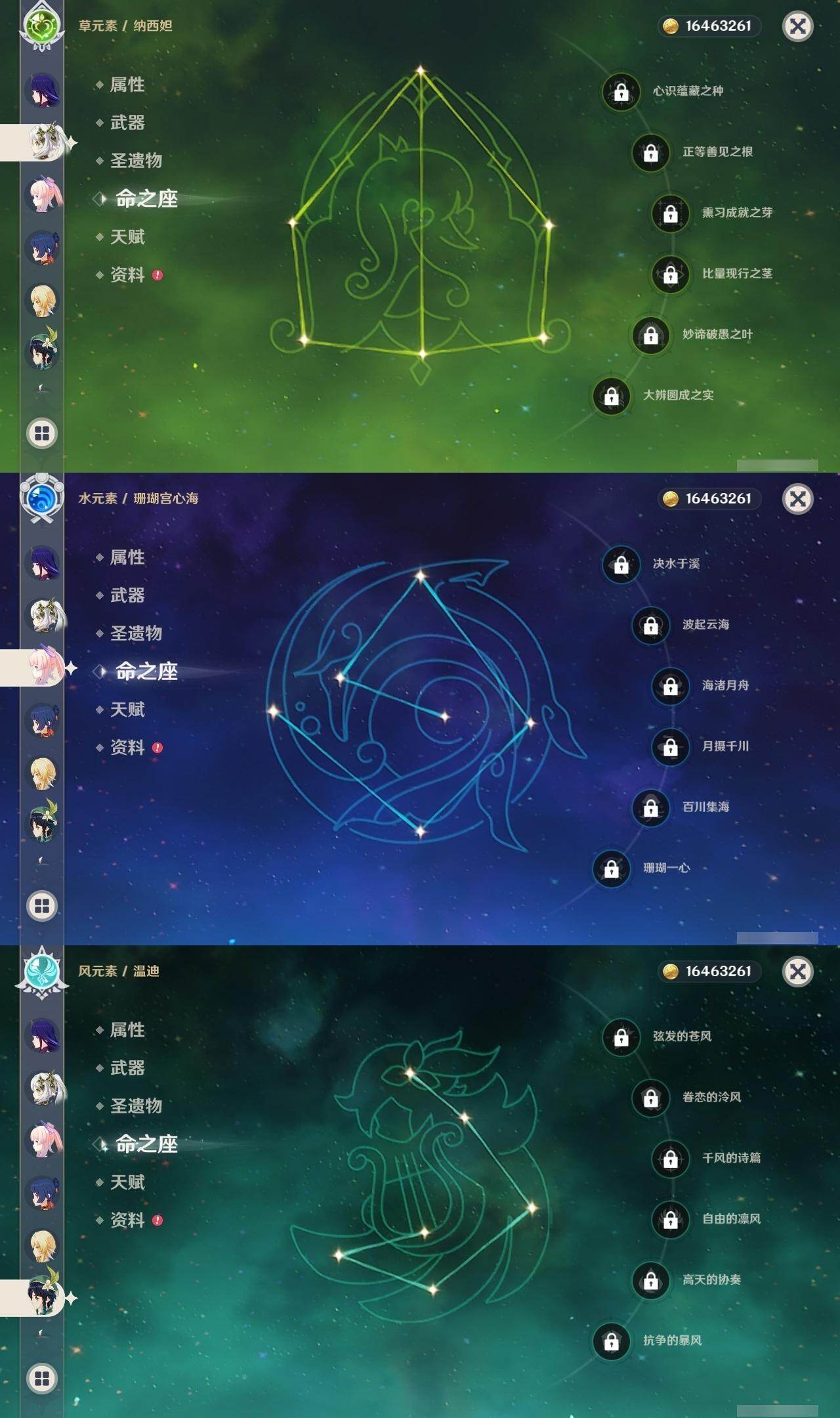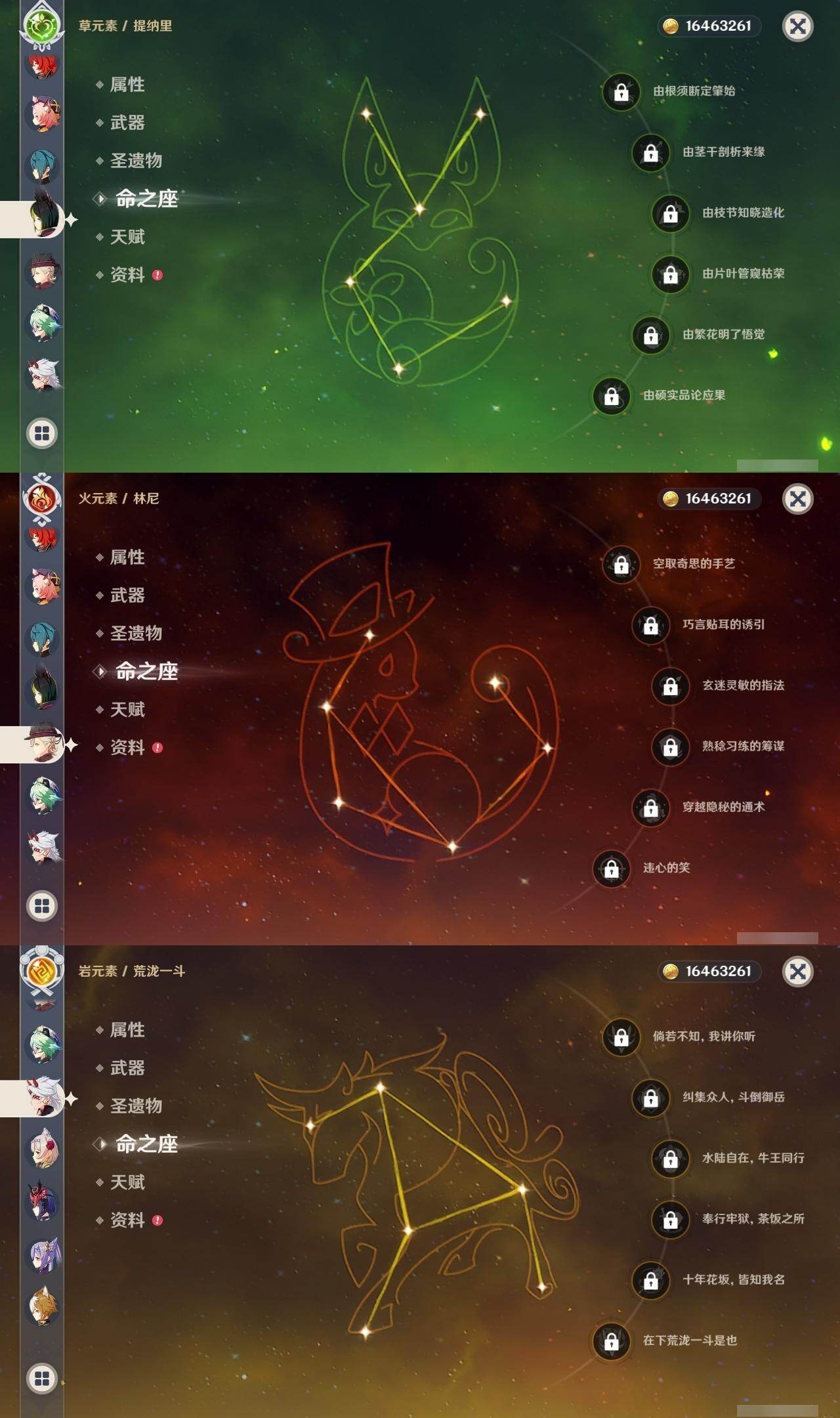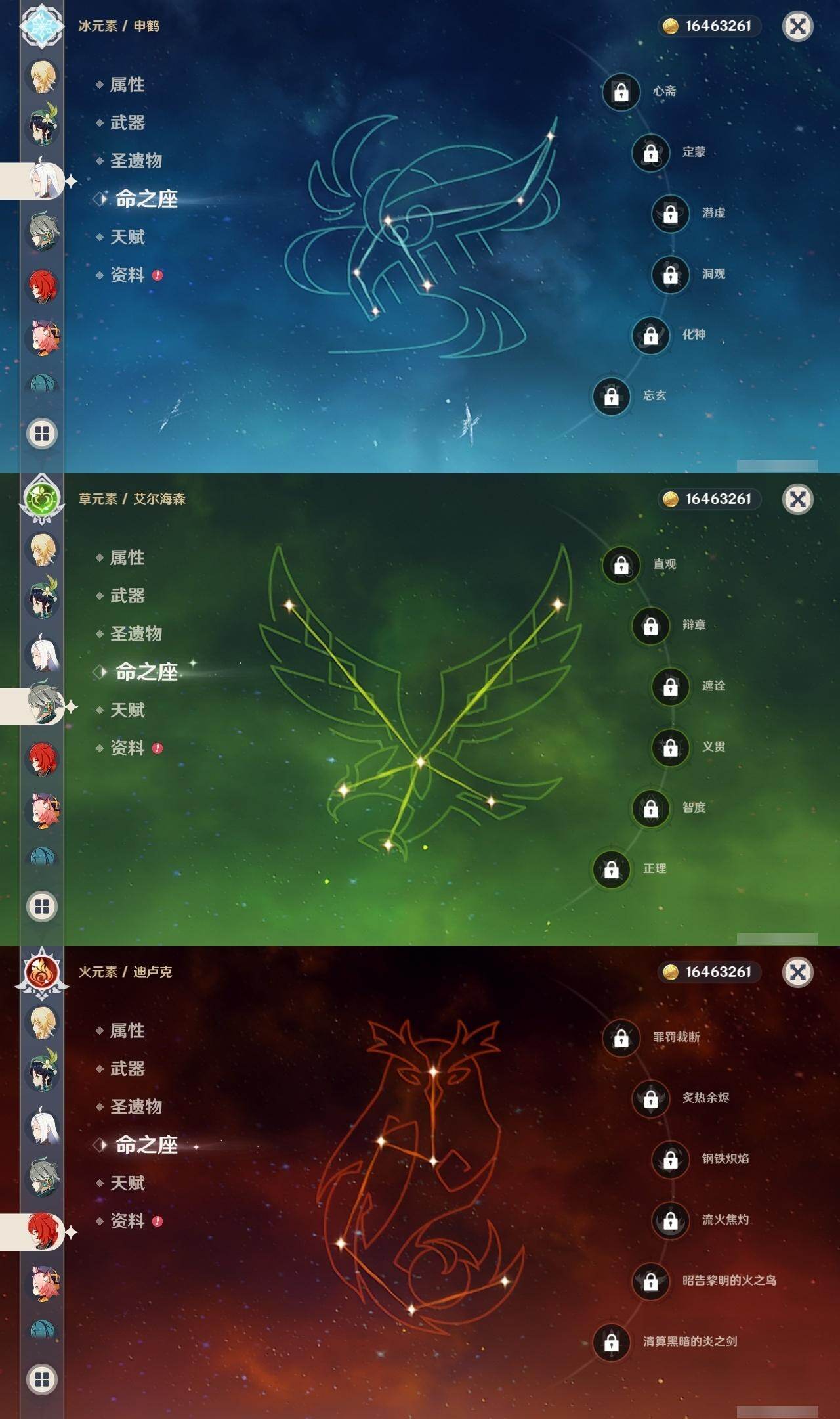 0命林尼,0命艾尔海森,0命纳西妲,0命提纳里,0命八重神子,0命申鹤,0命荒泷一斗,0命优菈,0命雷电将军,0命枫原万叶,0命神里绫华,0命钟离,0命甘雨,0命魈,0命温迪,0命阿贝多,0命珊瑚宫心海,5命刻晴,0命七七,0命琴,1命莫娜,0命迪卢克,精1裁叶萃光,精1千夜浮梦,精1赤沙之杖,精1天空之脊,精1阿莫斯之弓,精1风鹰剑,精1天空之傲