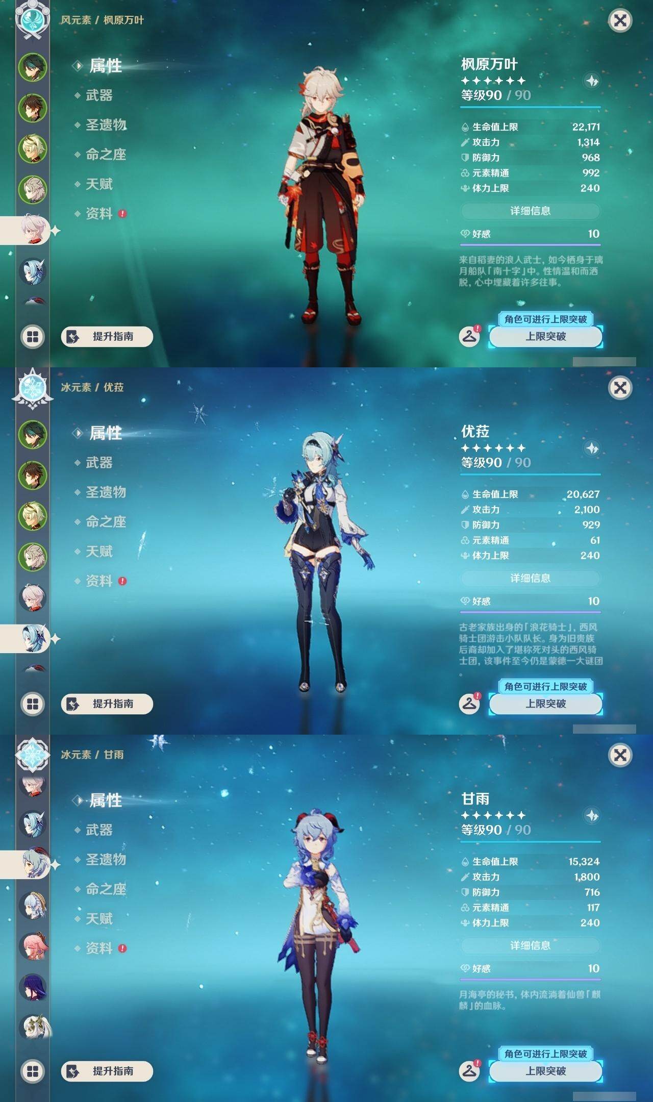魈,钟离,阿贝多,枫原万叶,优菈,甘雨,神里凌华,八重神子,雷电将军,珊瑚宫心海,温迪,申鹤,迪卢克,荒泷一斗,刻晴,琴,七七,莫娜