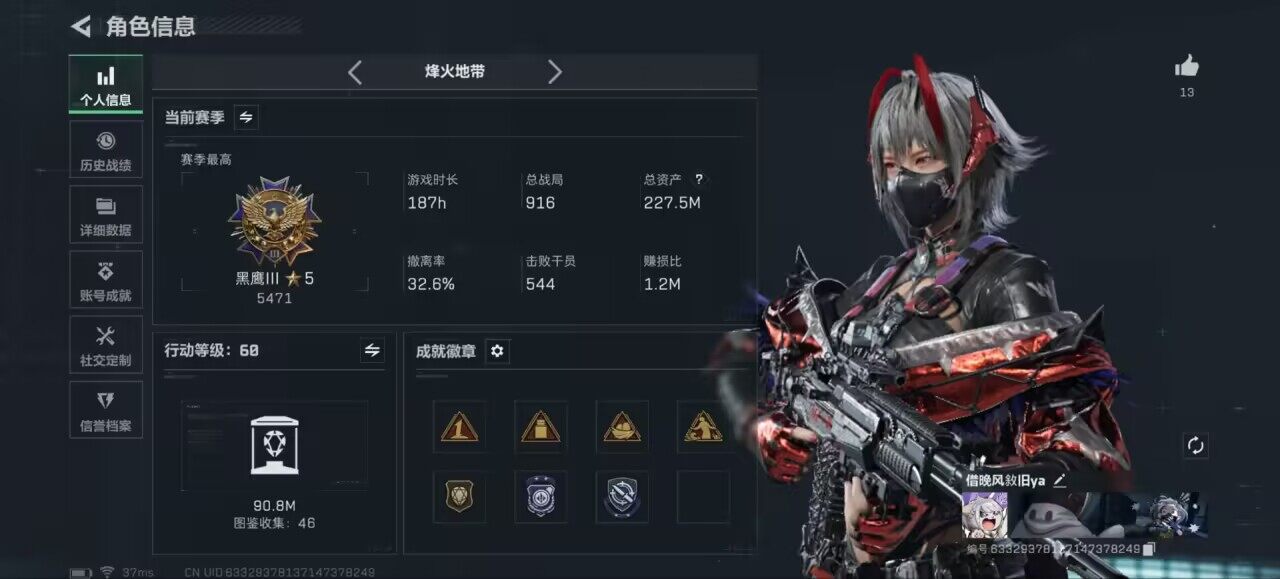 [17228367]227m总资产-1559k哈伏币-60烽火等级-黑鹰-32战场等级-尉官