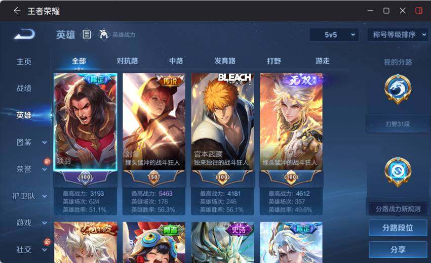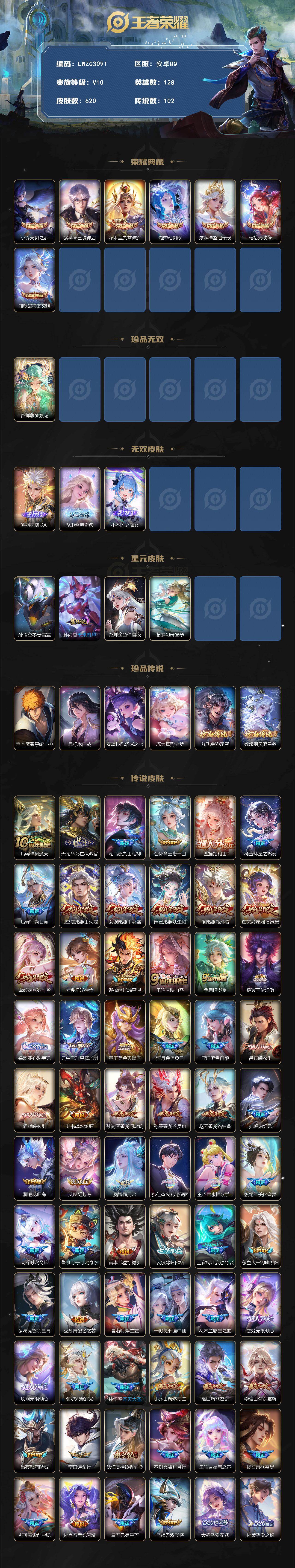 [17229494]【特价出售/店主推荐/1市标/31段打野/2930星币】:安卓Q-V10-至尊星耀I段位-128英雄-620皮肤-7典藏皮肤-1珍品无双-3无双-4星元-6珍品传说-102传说-212史诗