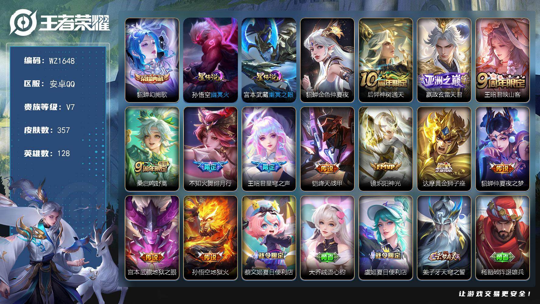 [17230497]安卓Q-357皮肤-1典藏皮肤-12传说-93史诗